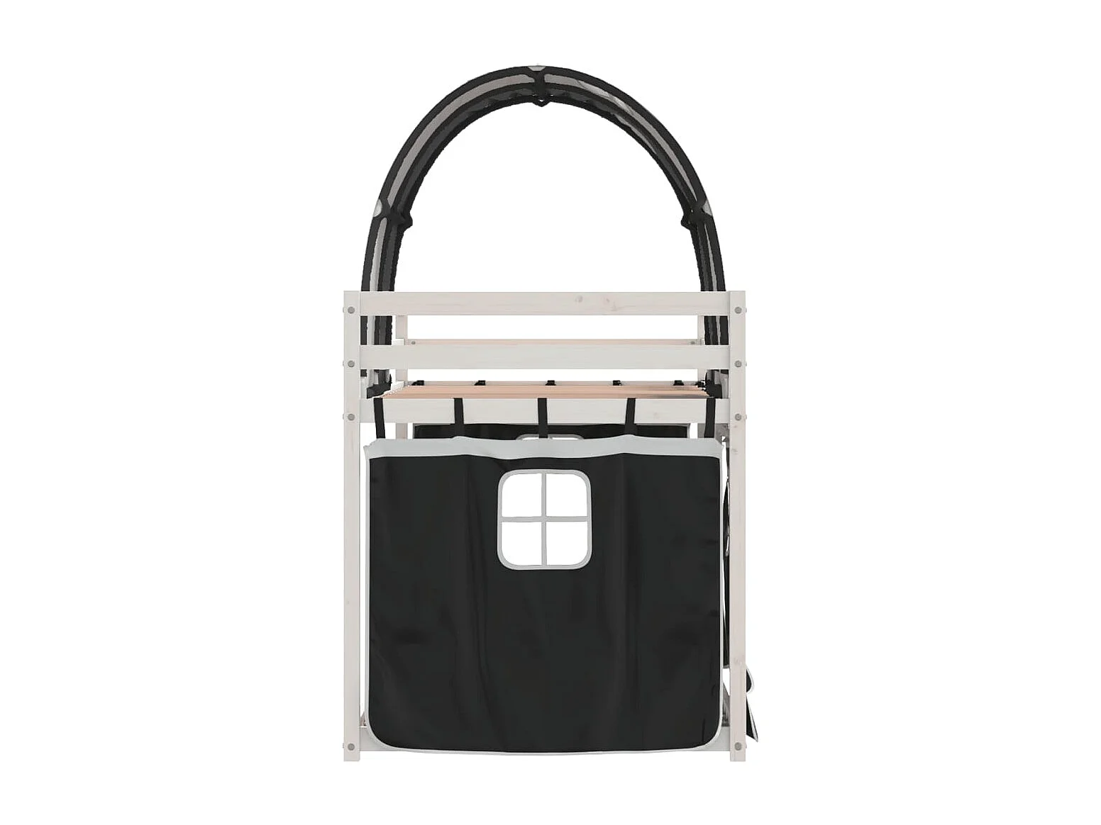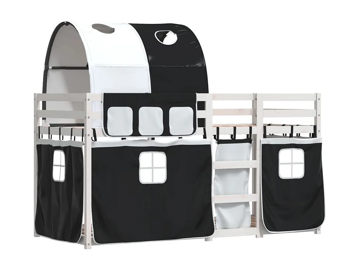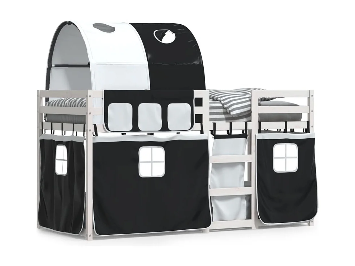 Kinderbett-Etagenbett-Bettgestell mit Vorhängen Weiß Schwarz 90x200 cm Kiefernholz SHL145567