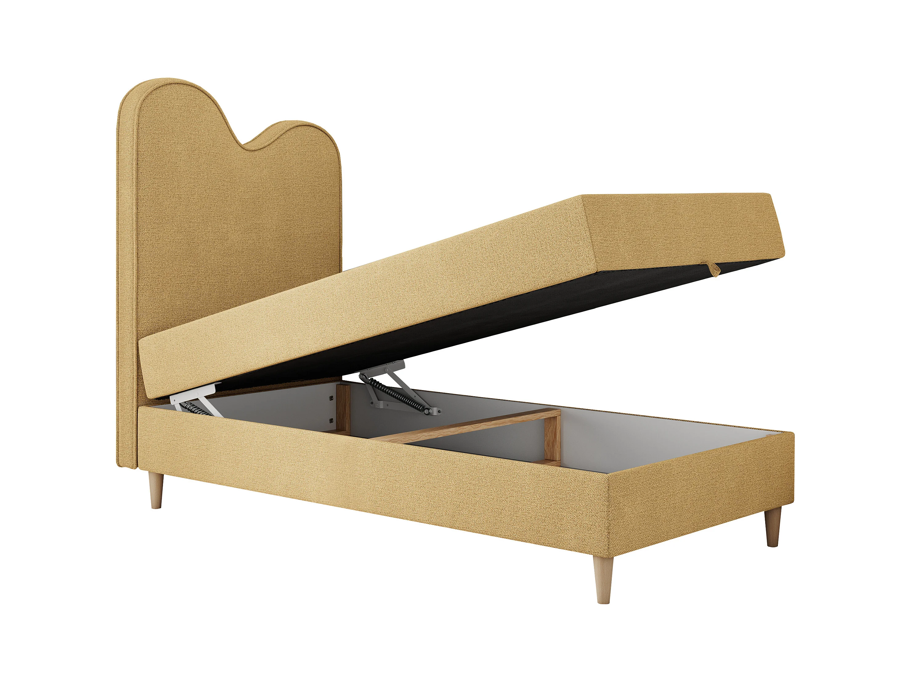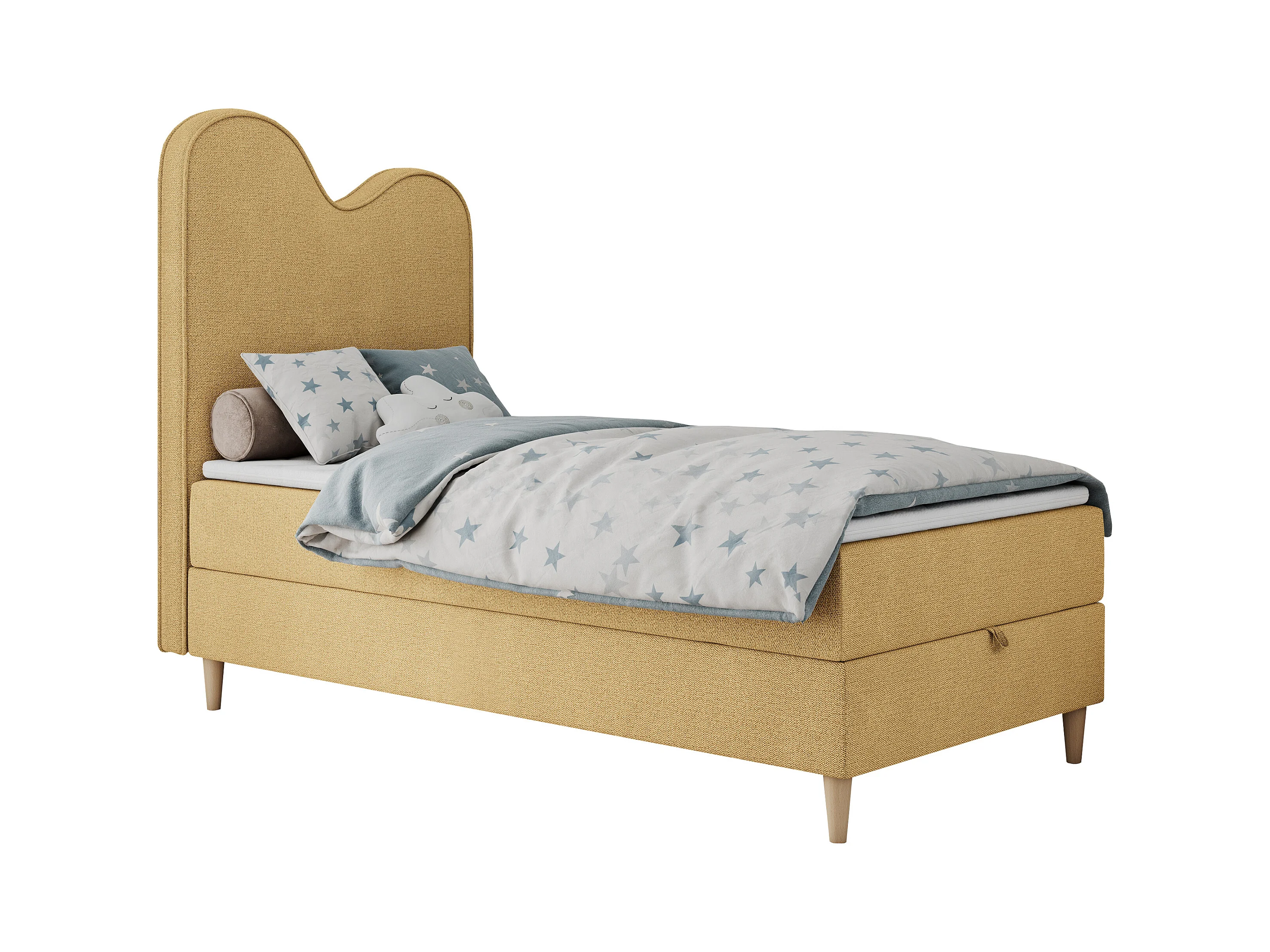 Kinderbett FLOW - Boxspringbett mit Stauraum, Einzelbett für Jugendliche, Bettkasten und hohe Kopfteil - 90x180 cm - Gelb Strukture