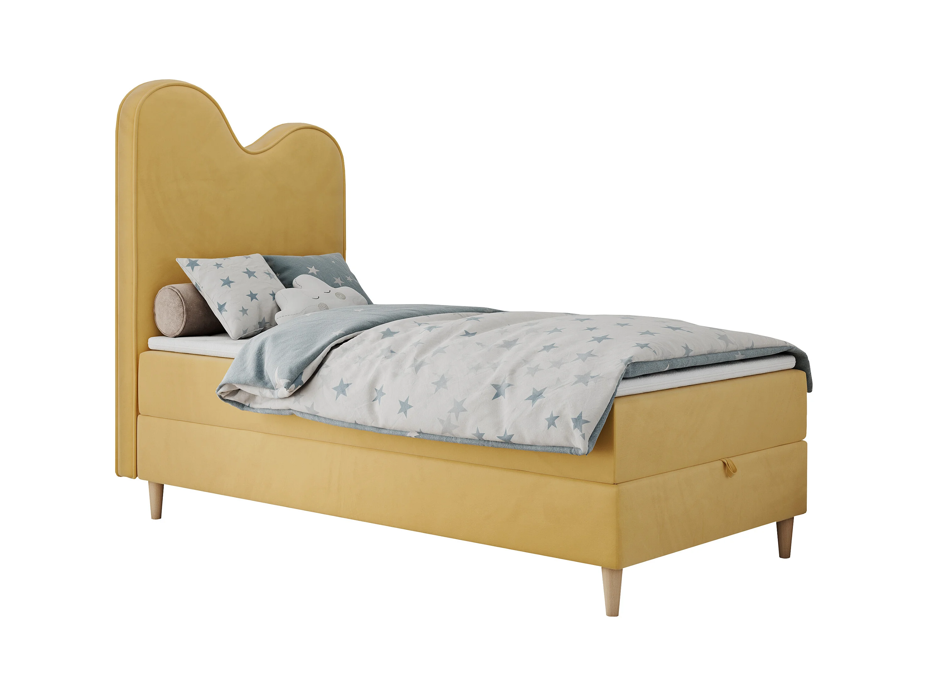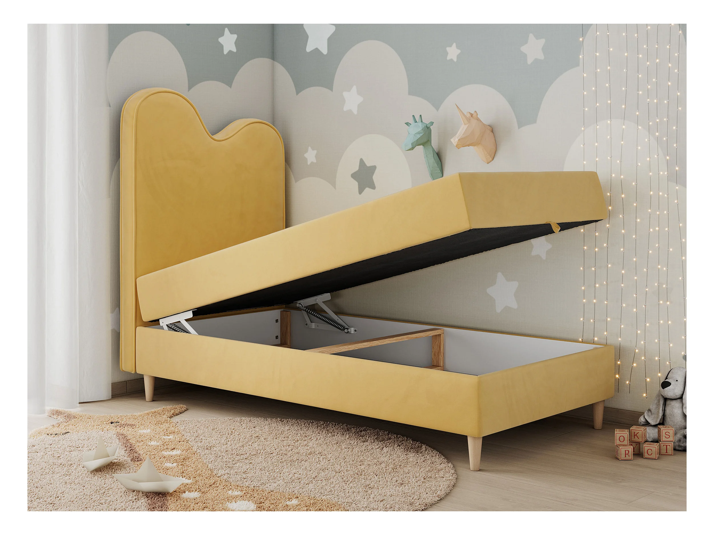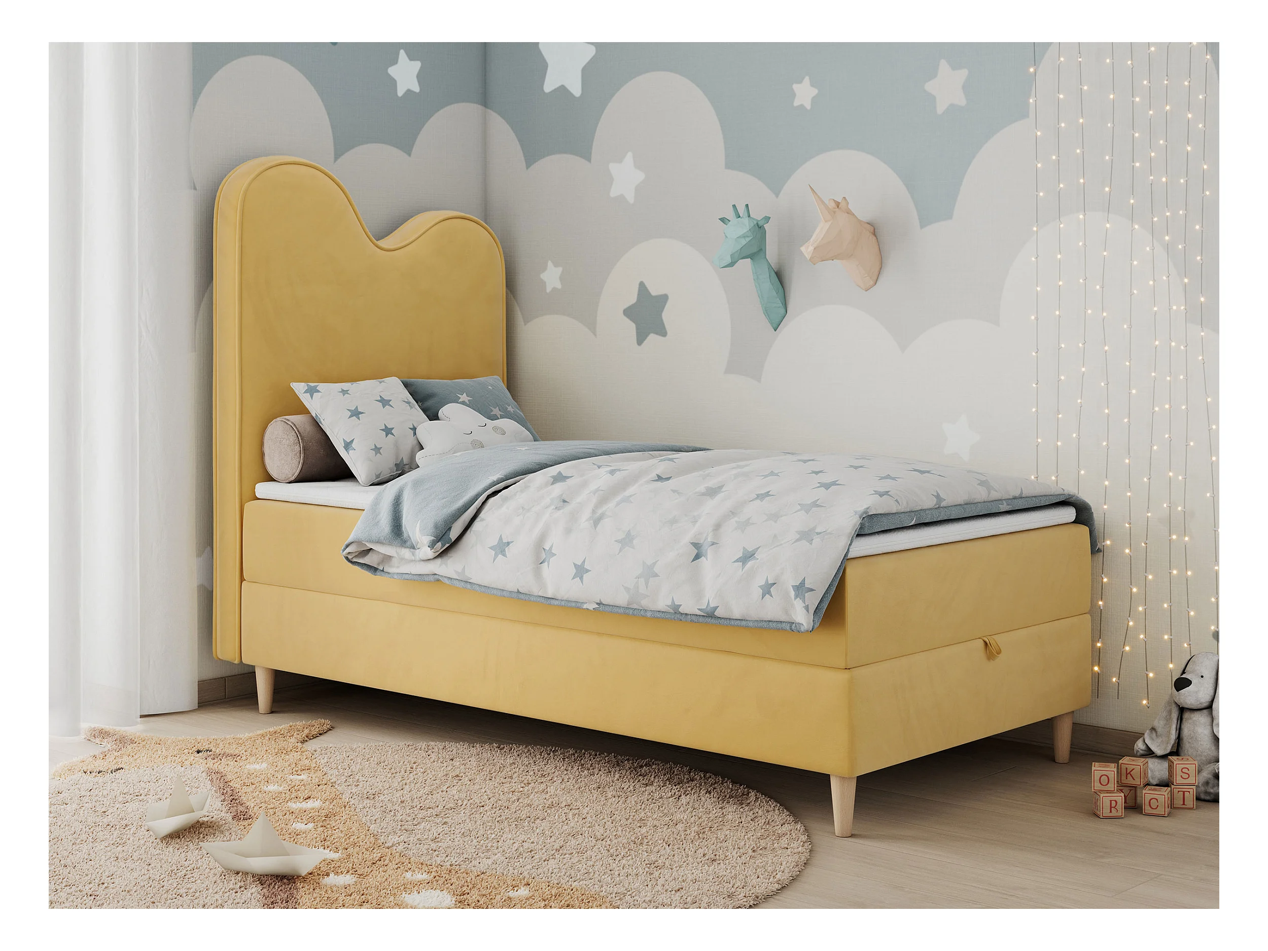 Kinderbett FLOW - Boxspringbett mit Stauraum, Einzelbett für Jugendliche, Bettkasten und hohe Kopfteil - 90x180 cm - Gelb Velvet
