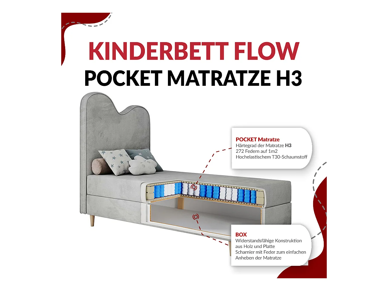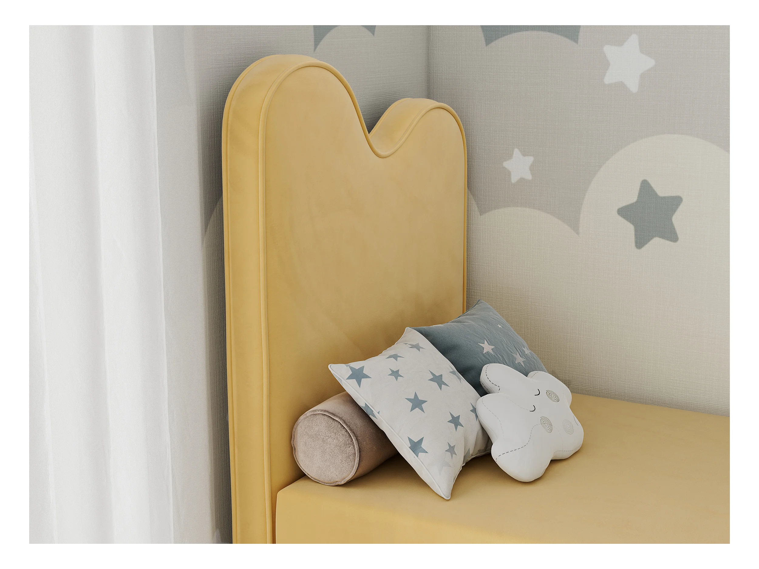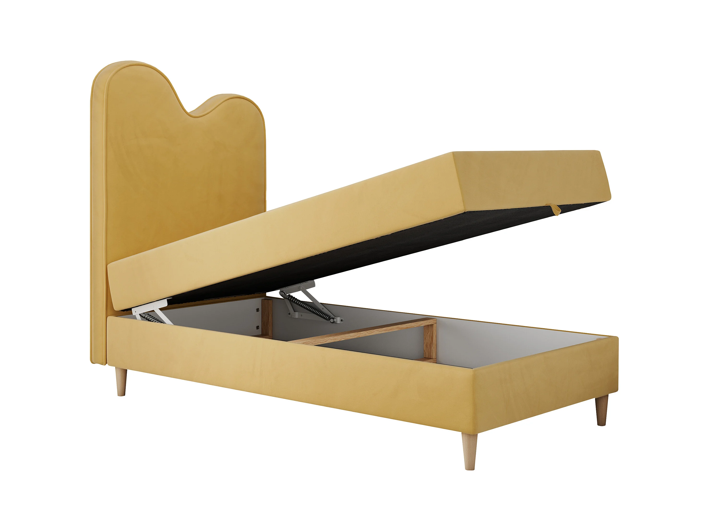 Kinderbett FLOW - Boxspringbett mit Stauraum, Einzelbett für Jugendliche, Bettkasten und hohe Kopfteil - 90x180 cm - Gelb Velvet