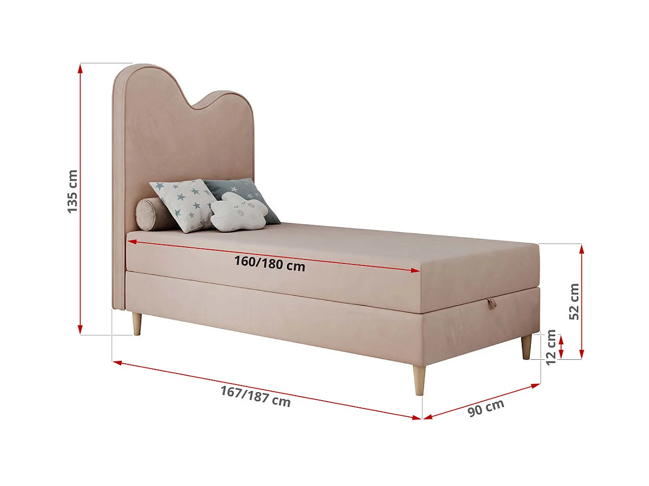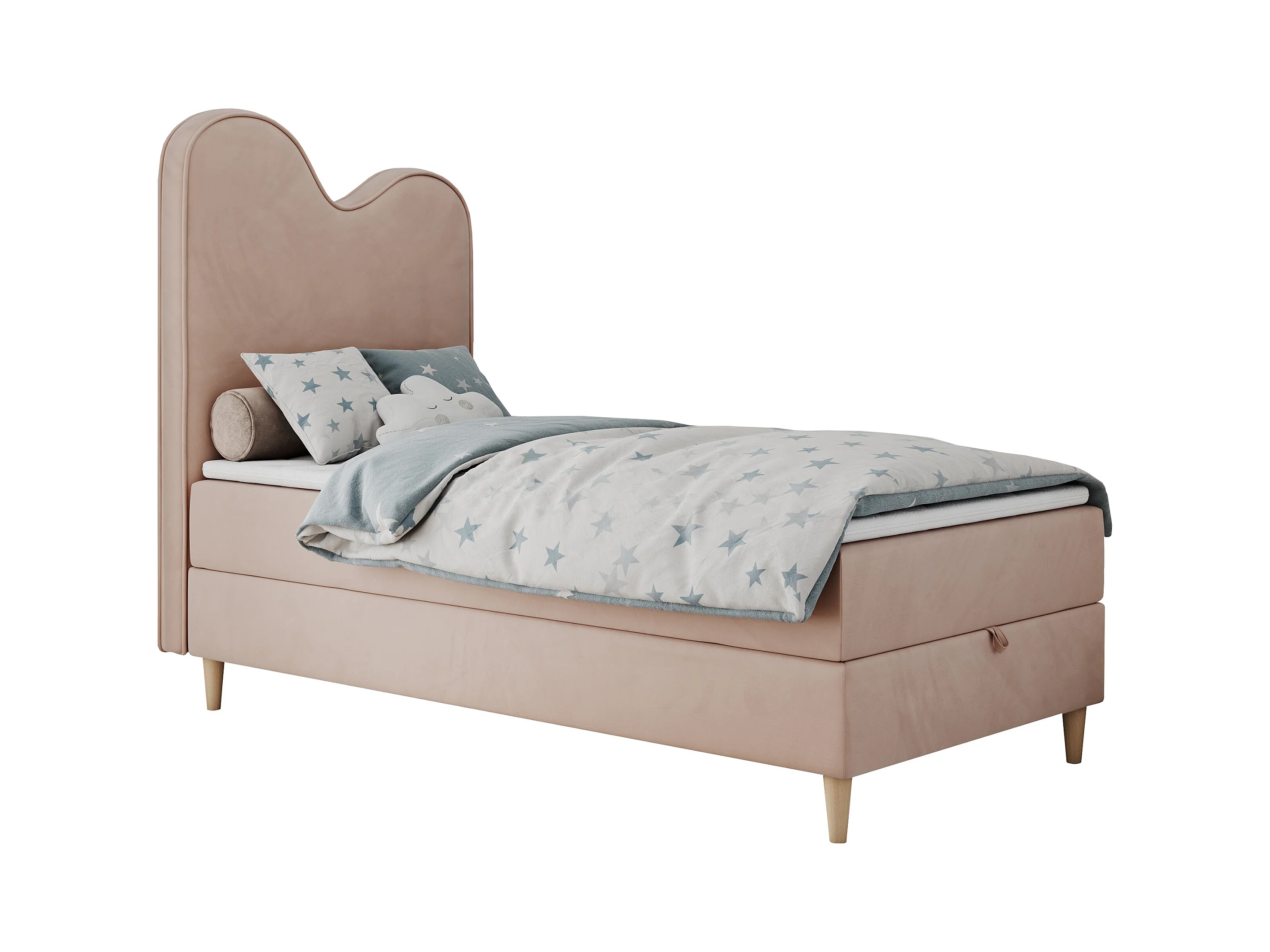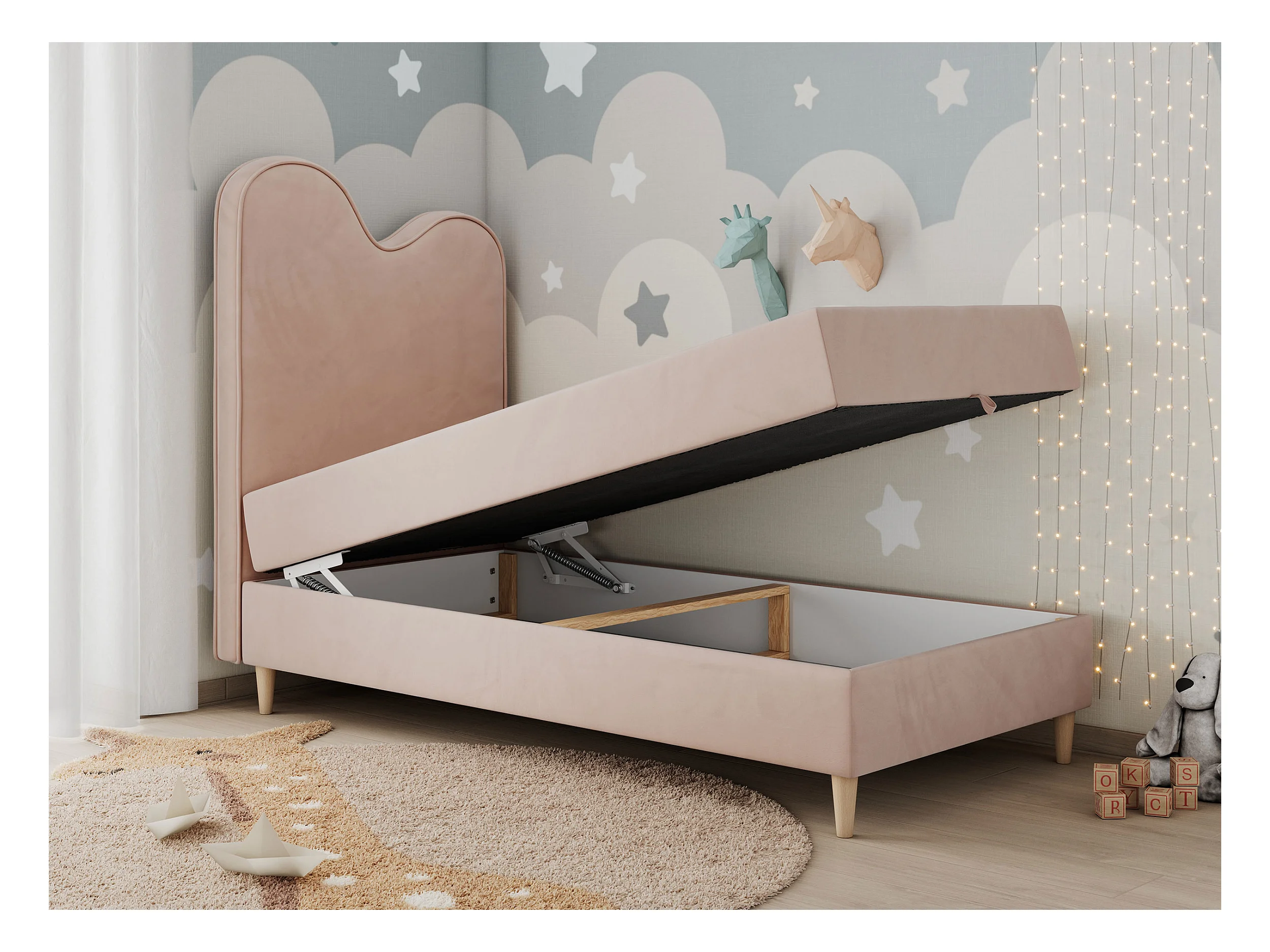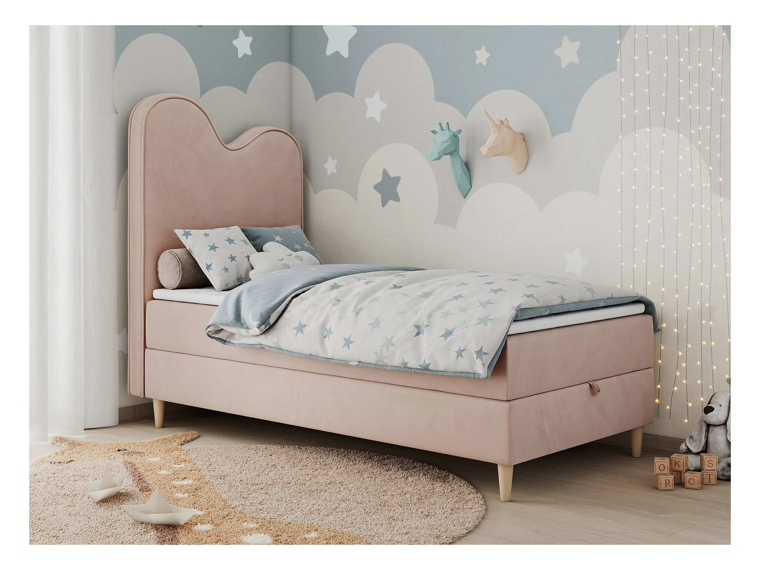 Kinderbett FLOW - Boxspringbett mit Stauraum, Einzelbett für Jugendliche, Bettkasten und hohe Kopfteil - 90x180 cm - Rosa Velvet