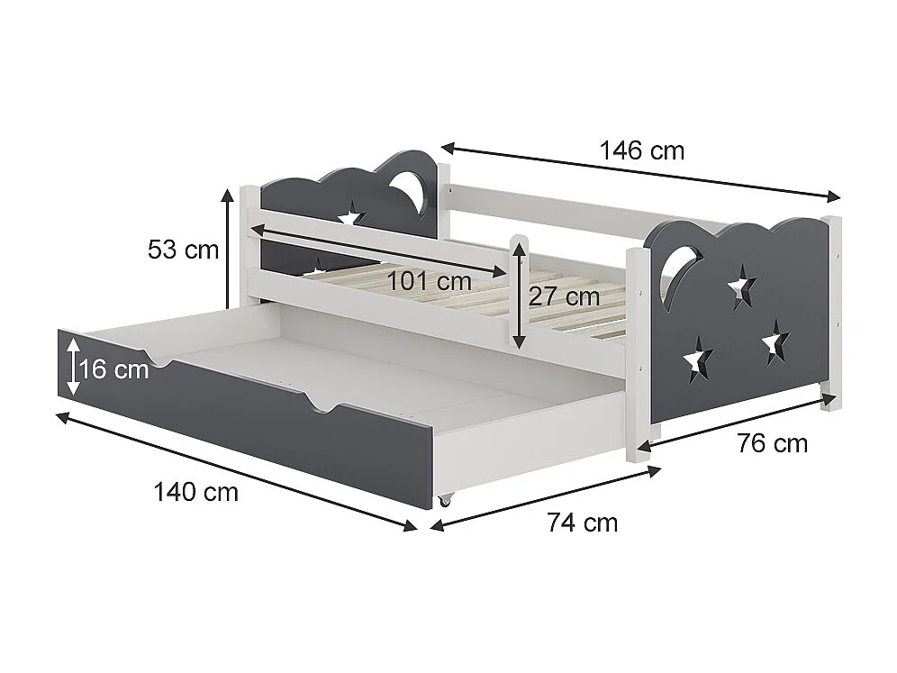 Kinderbett grau 146x76x53 jessica