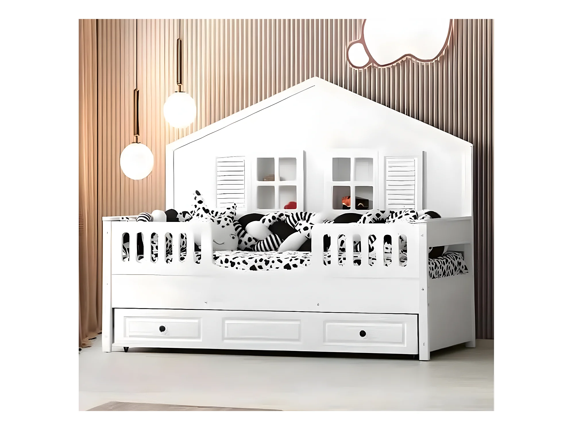 Kinderbett Holzbett Funktionsbett Ausziehbares Weiß Holz Bett 90 x 200 (1-tlg., 1x Bett)