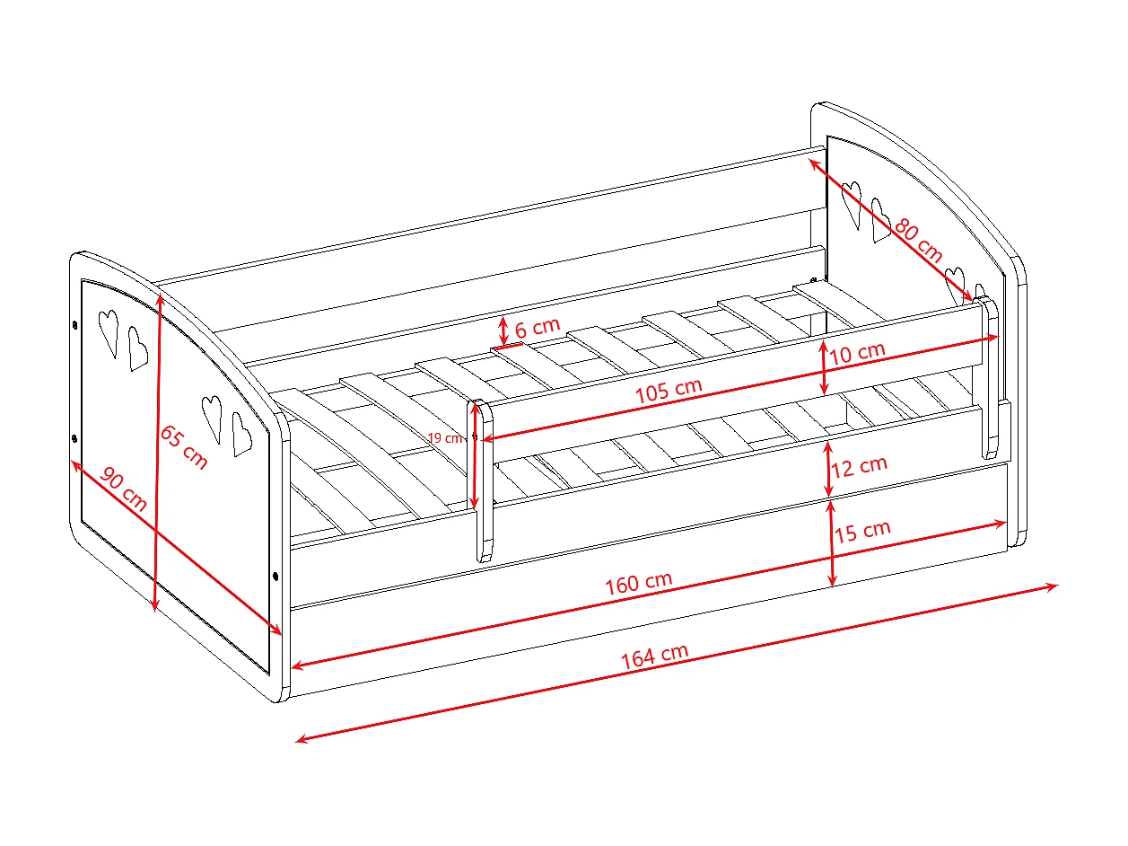 Kinderbett Jugendbett JULIA 70x140, 80x160, 80x180 cm - Komplettset mit Schublade & Rausfallschutz