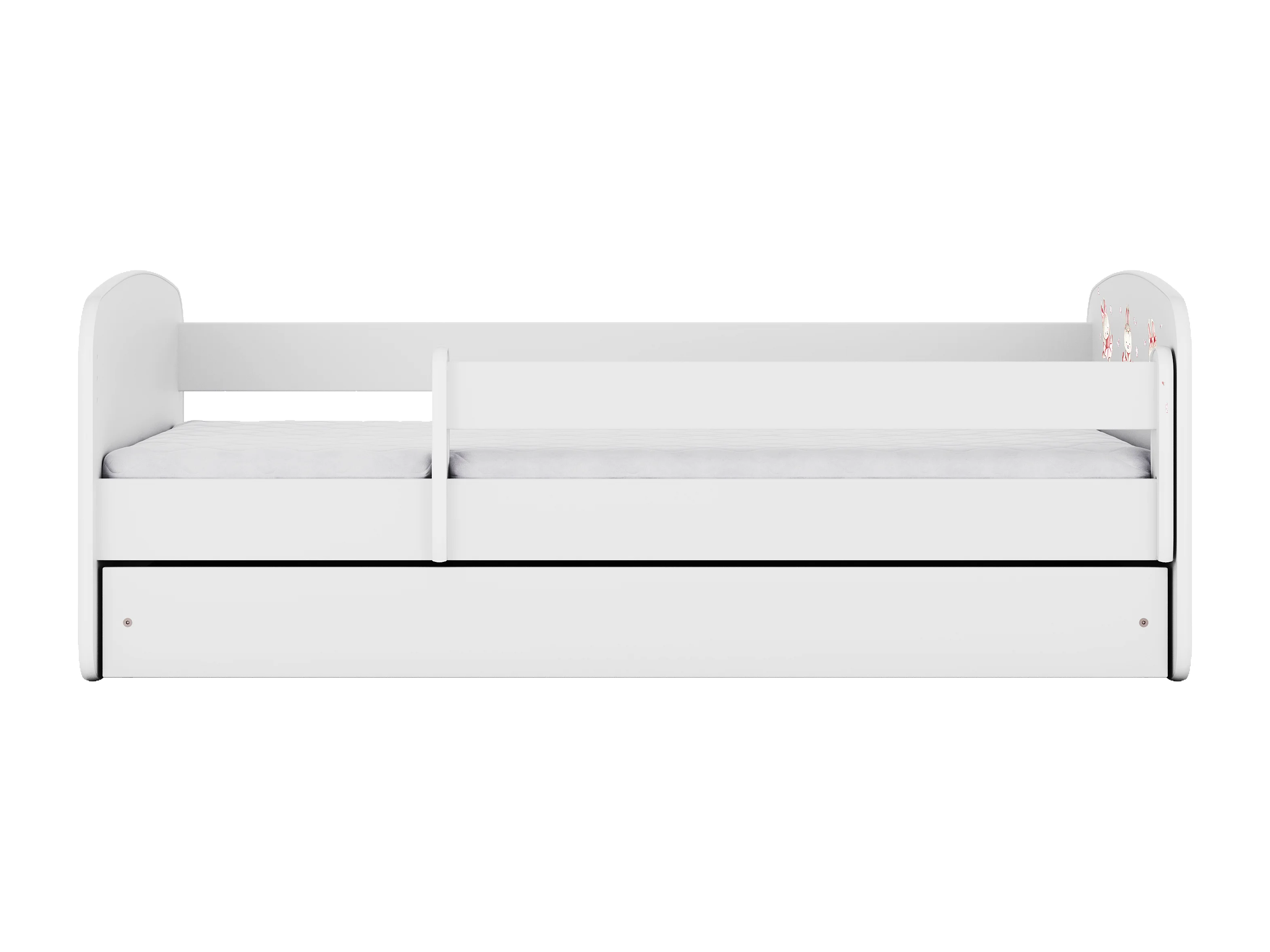 Kinderbett Jugendbett Kaninchen mit Schmetterlingen 70x140, 80x160, 80x180 cm - Komplettset mit Schublade & Rausfallschutz