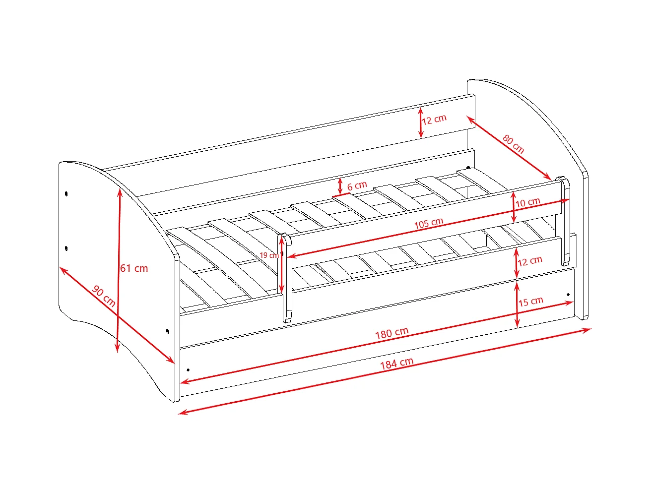 Kinderbett Jugendbett Wednesday 70x140, 80x160, 80x180 cm - Komplettset mit Schublade & Rausfallschutz