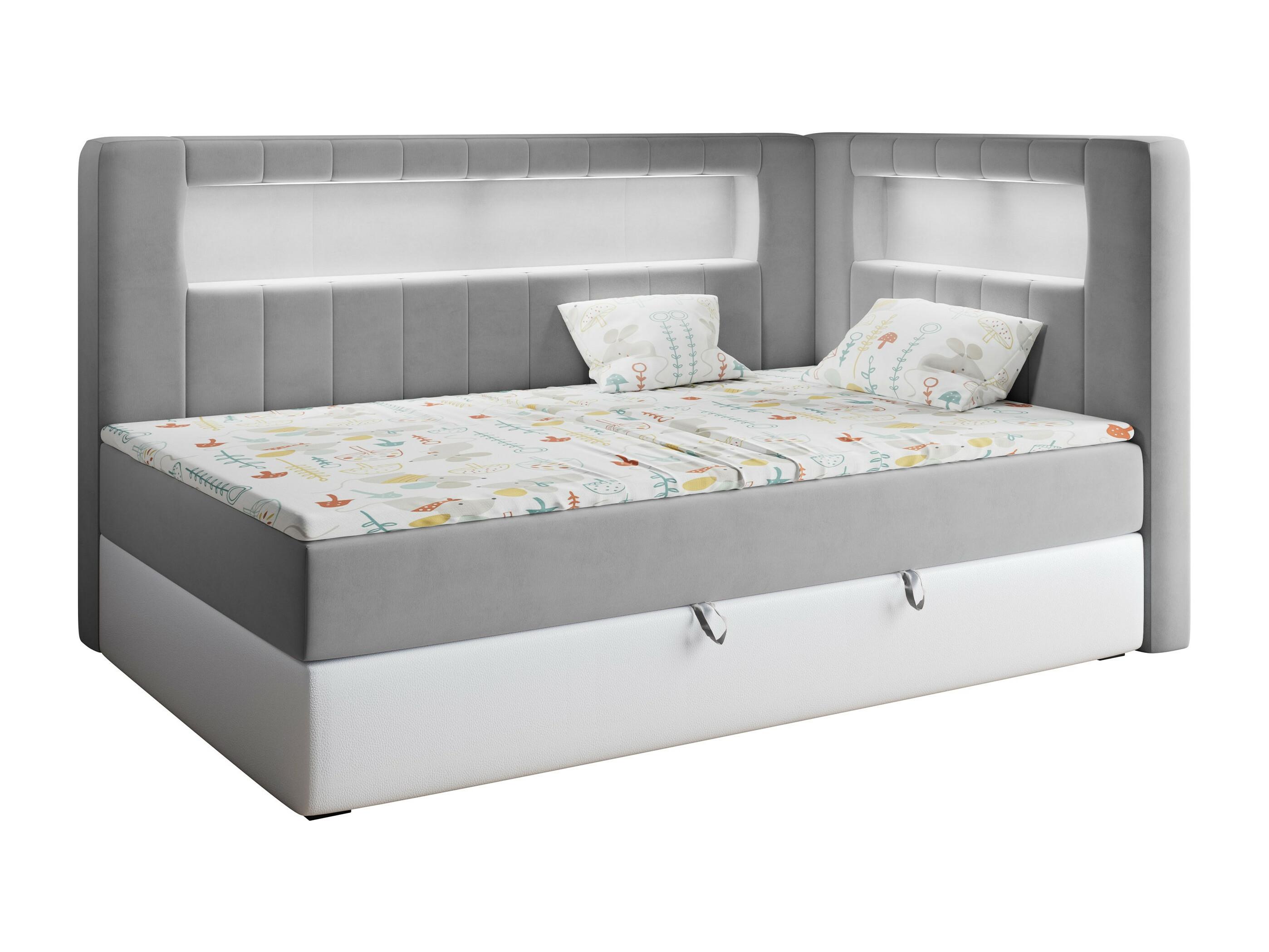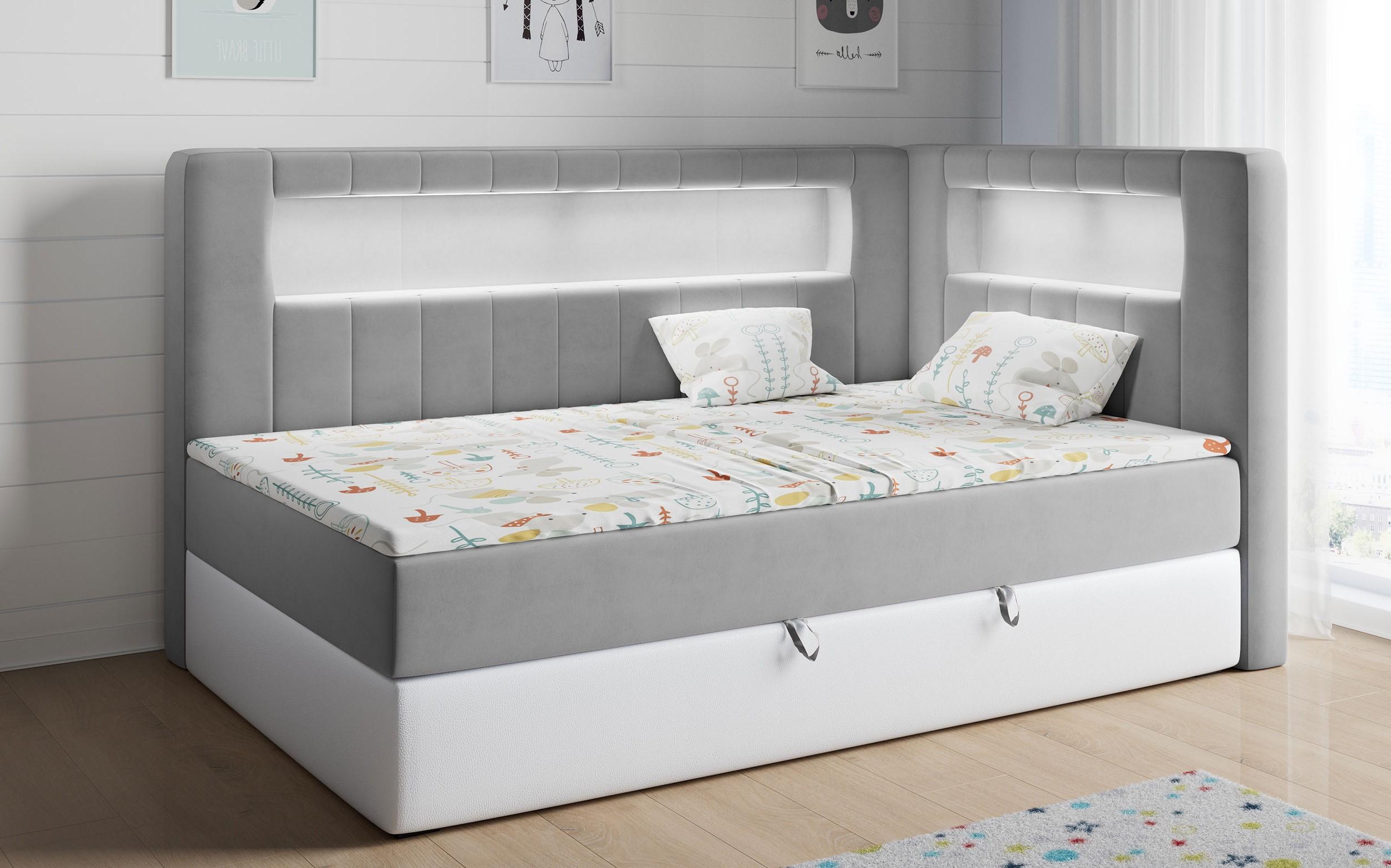 Kinderbett JUNIOR GOLD 3 - Einzelbett mit Matratze, LED-Beleuchtung, Bettkasten - 90x200 cm - Rechts Seite