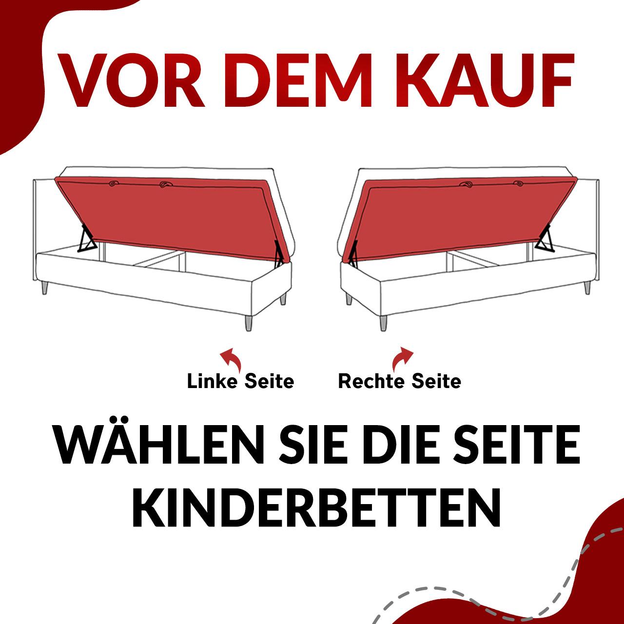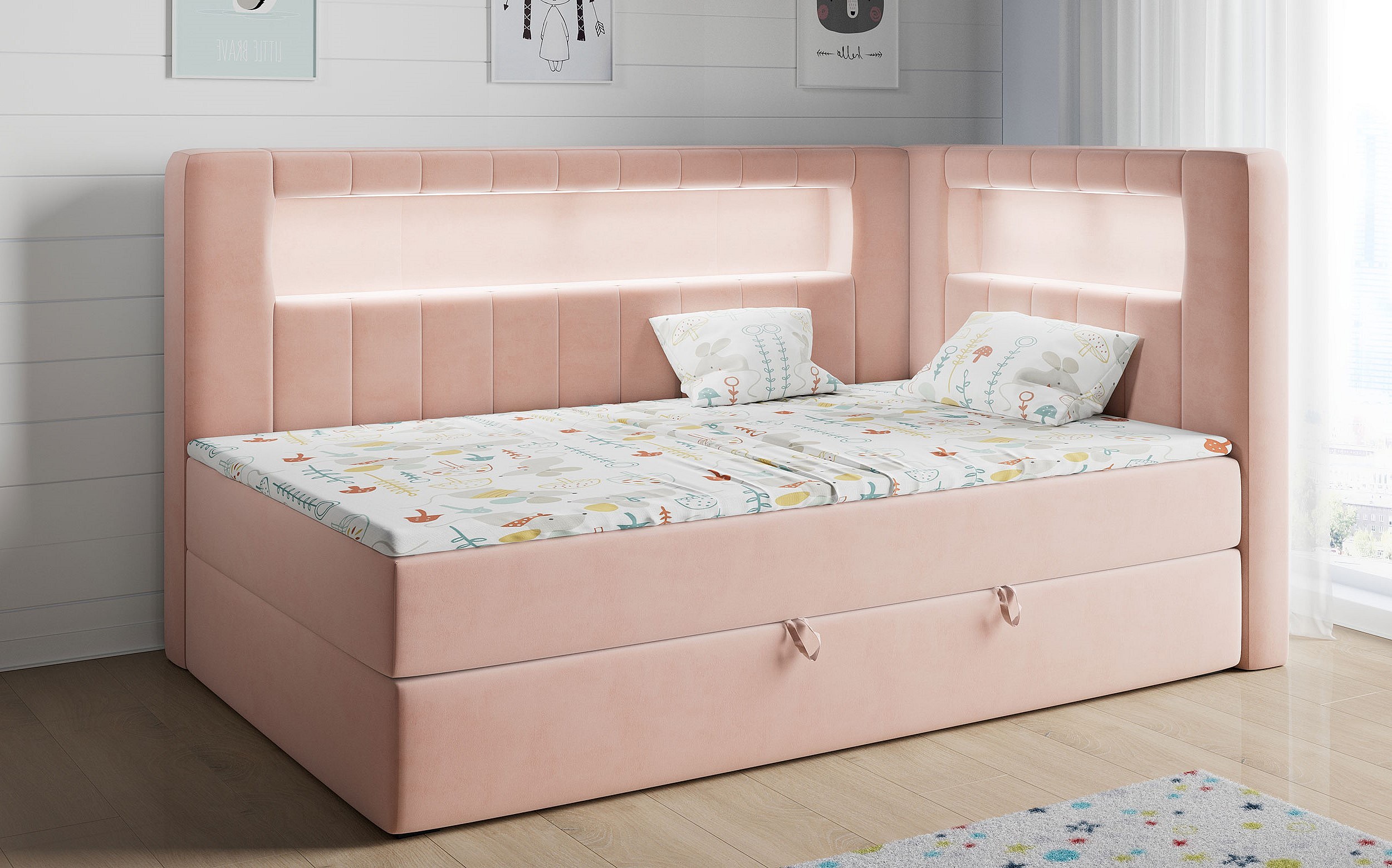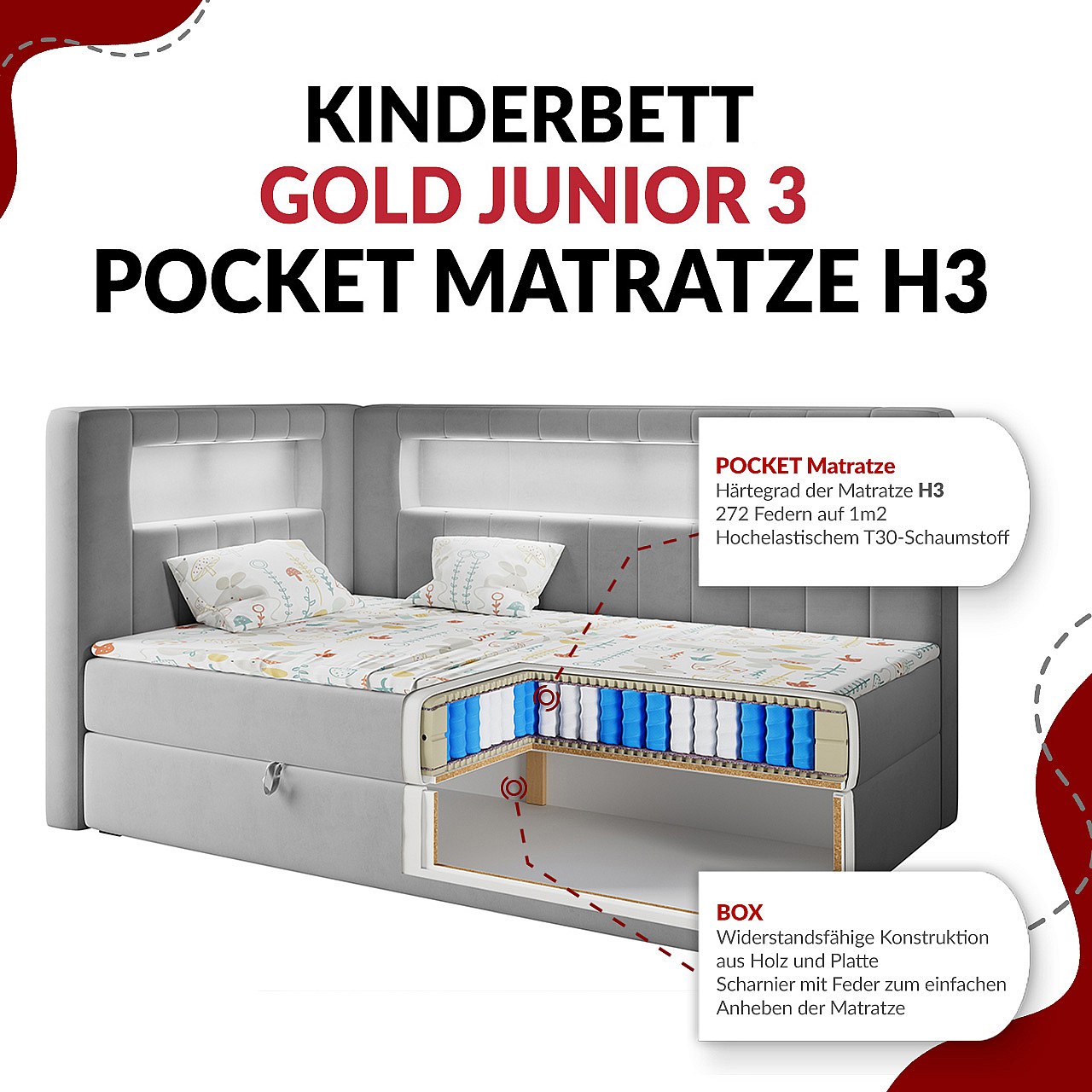 Kinderbett JUNIOR GOLD 3 - Einzelbett mit Matratze, LED-Beleuchtung, Bettkasten - 90x200 cm - Rechts Seite