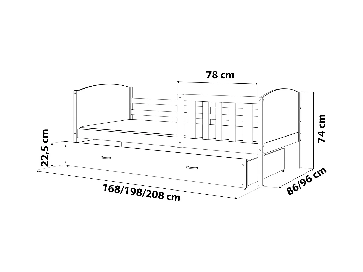 KINDERBETT mit Bettkasten Edi 190x80 cm, Weiss