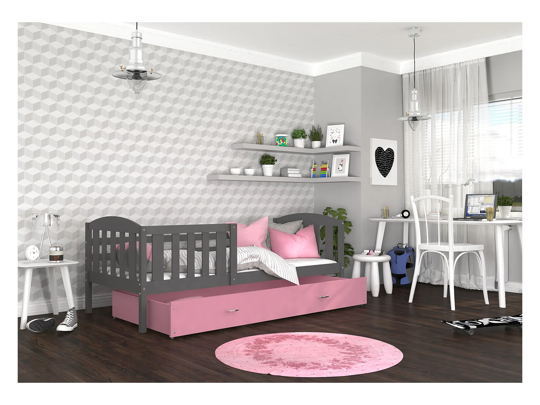 KINDERBETT mit Bettkasten Matratze Jacob 190x80 cm, grauer Korpus / rosa Schublade