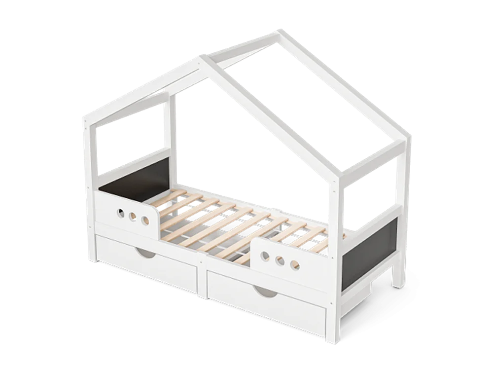 Kinderbett mit Dachdesign, 2 großen Schubladen und stabilem,für 90×200 cm Matratze