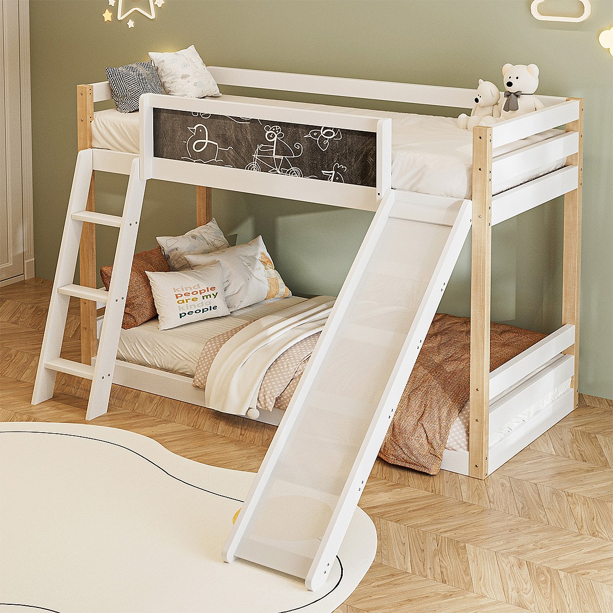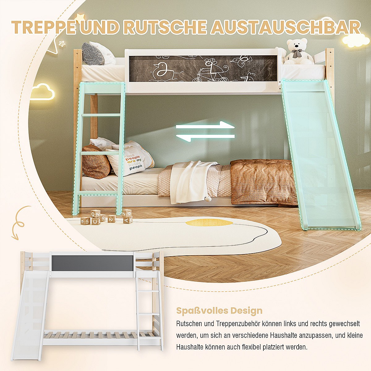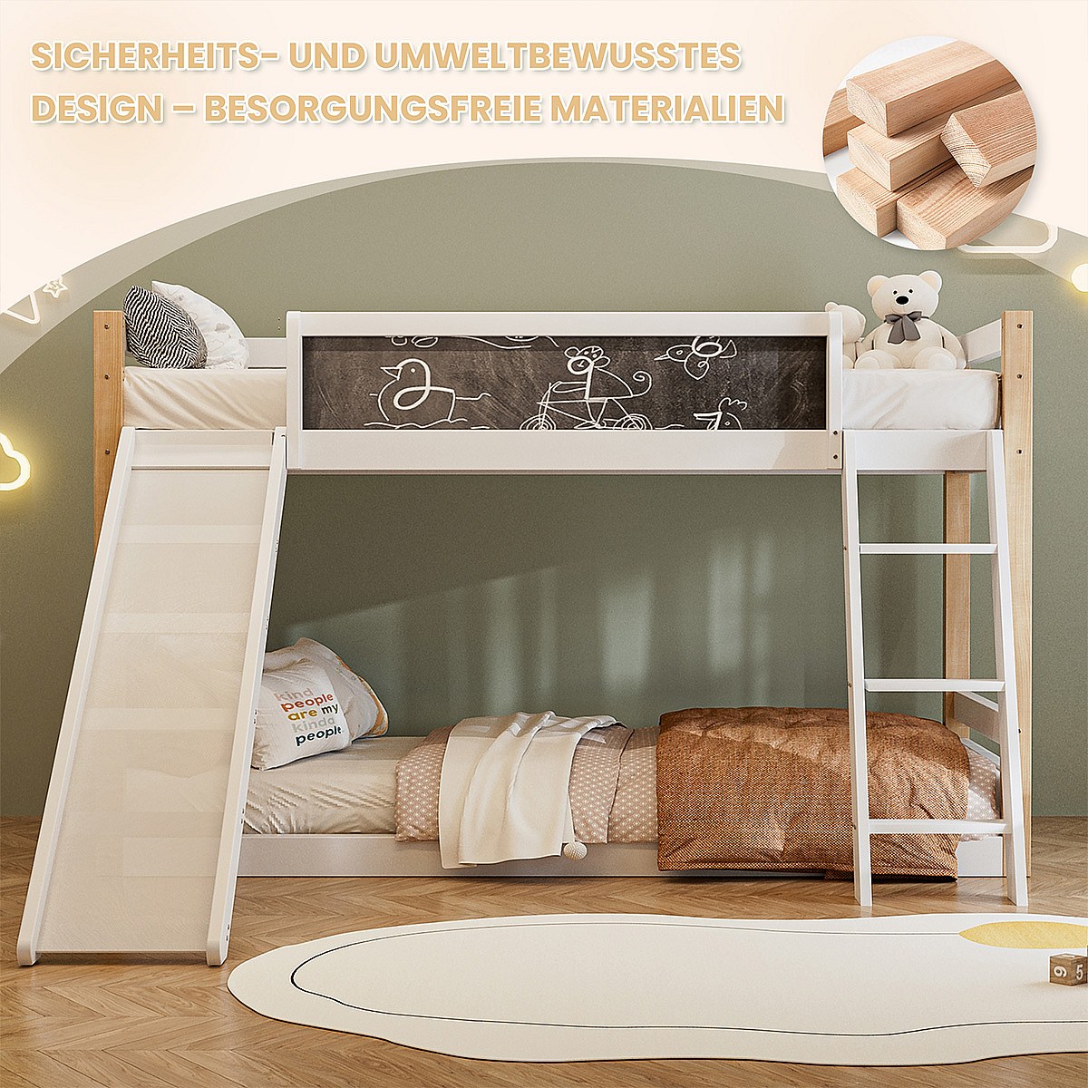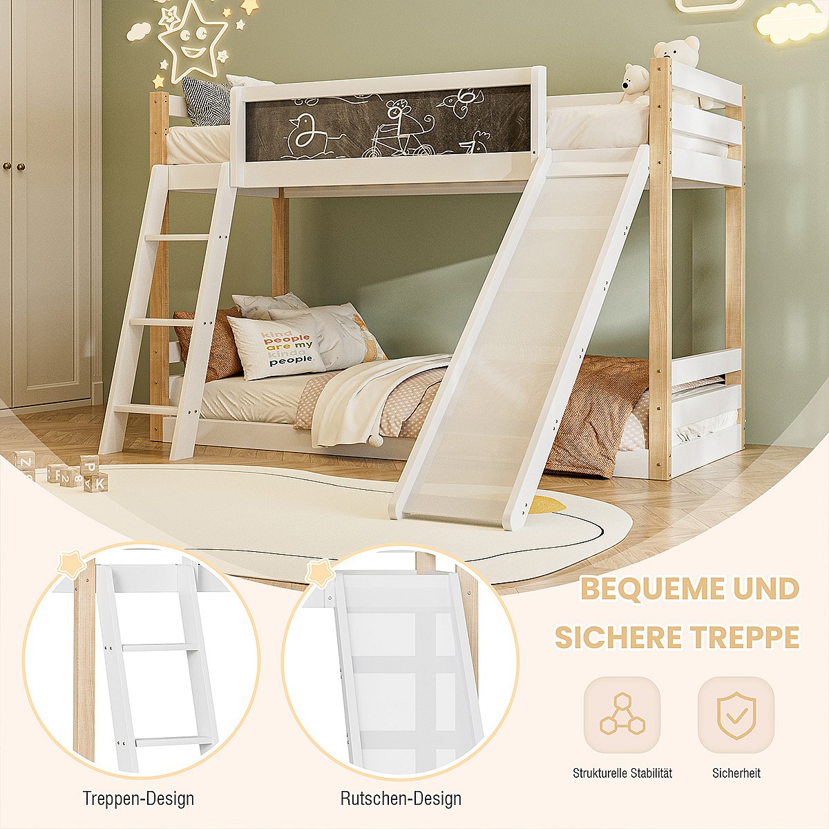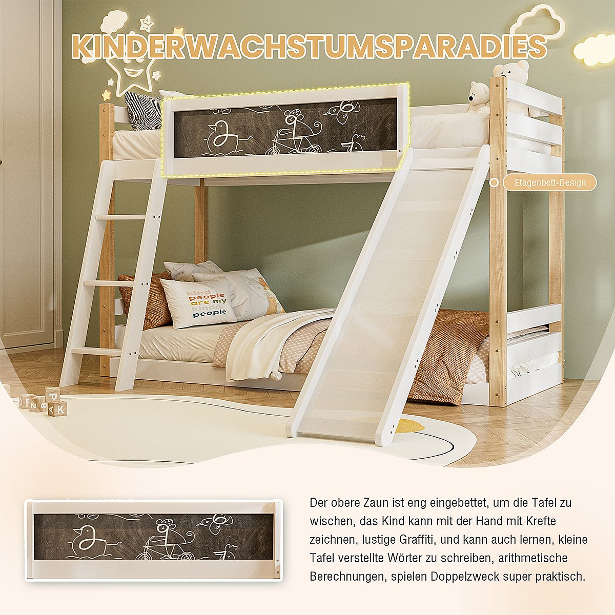 Kinderbett mit Rutsche & Treppe Etagenbett Jugendbett Kinder-Familienbett für 90×200 & 90×190 cm Matratzen Weiß
