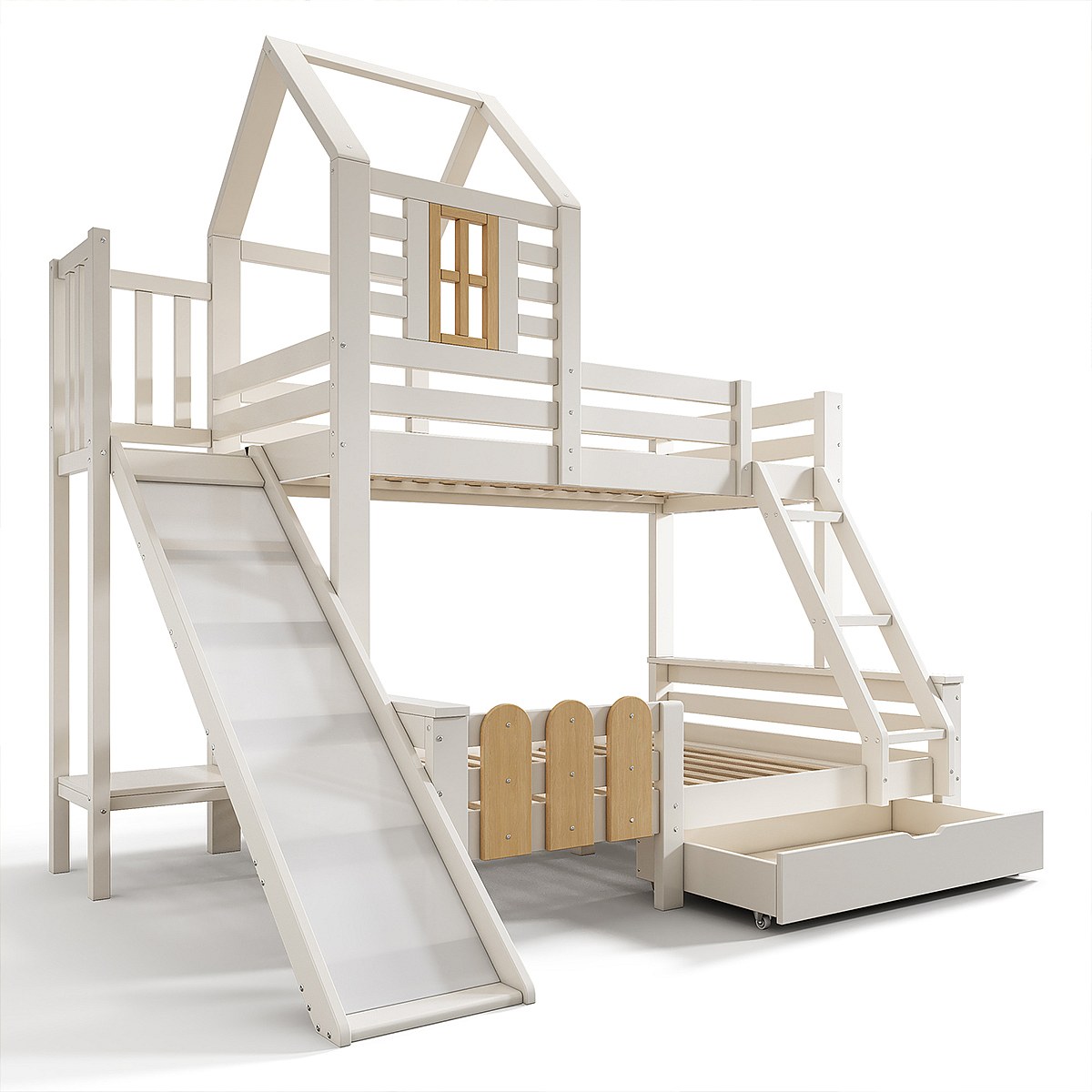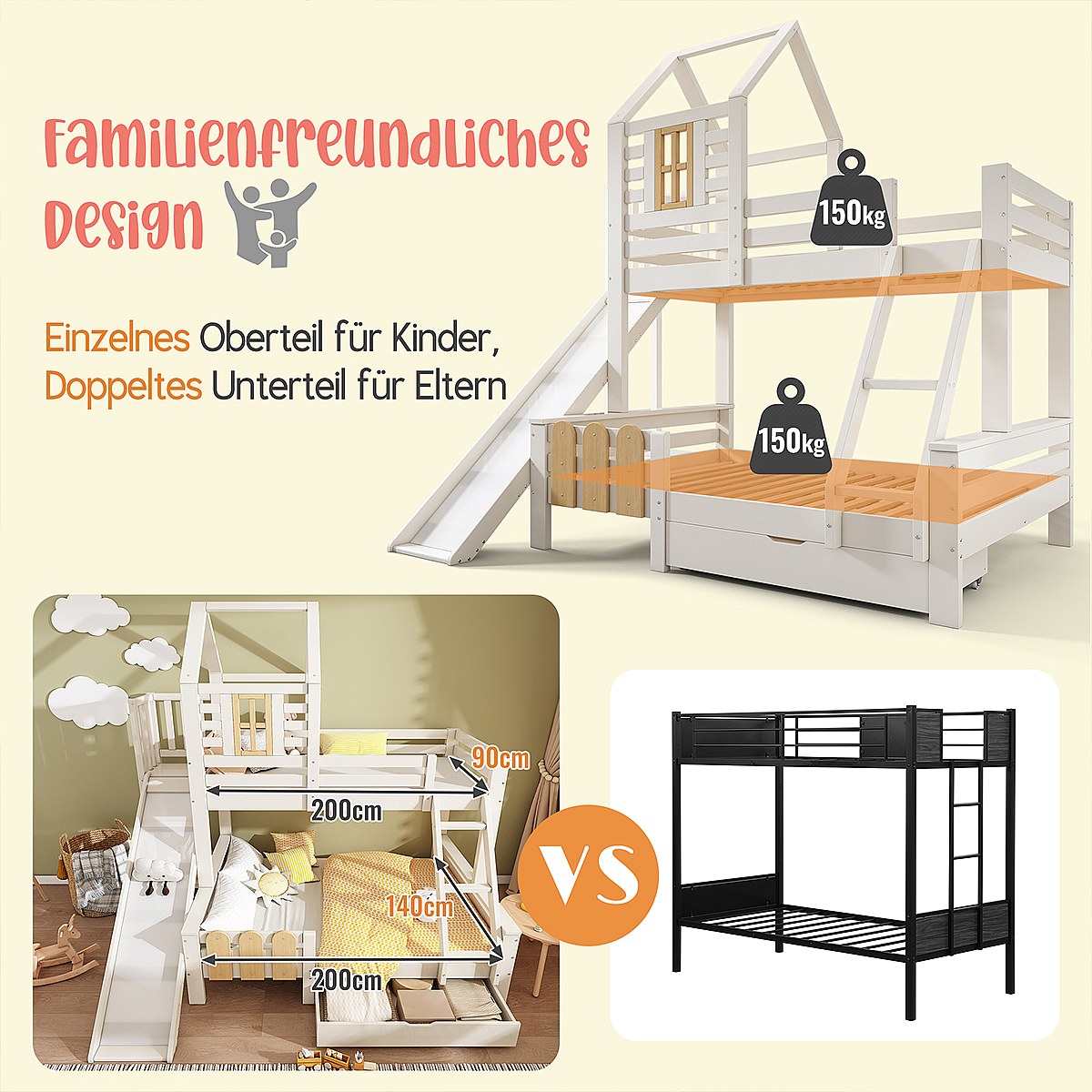Kinderbett mit Schublade Rutsche und Leiter Etagenbett Jugendbett Hochbett 90x200 & 140x200cm Weiß