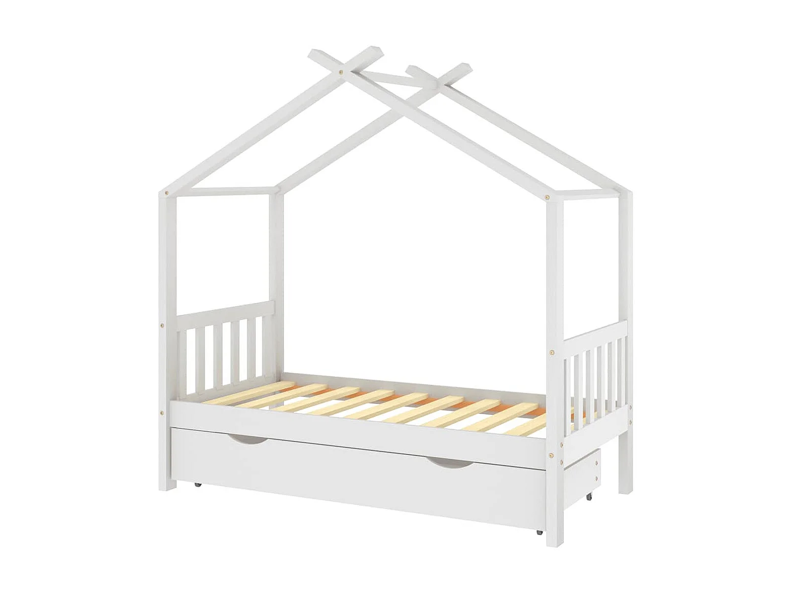 Kinderbett mit Schublade Weiß Massivholz Kiefer 80x160 cm