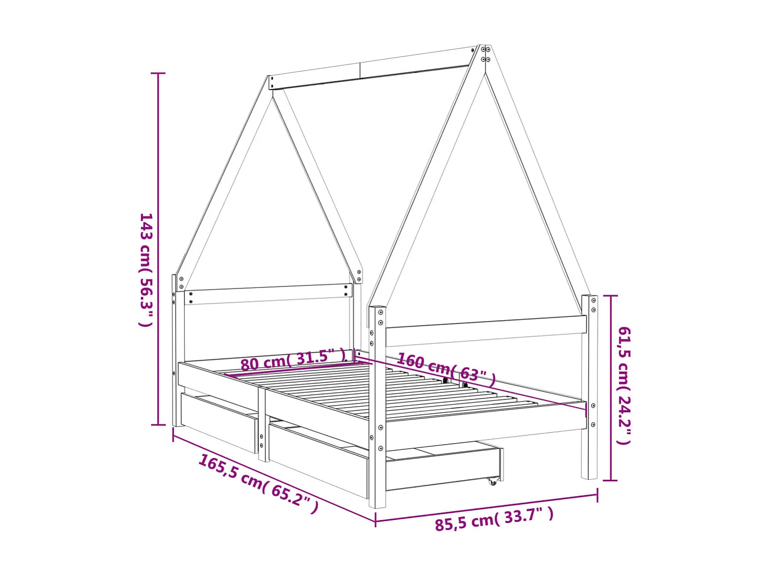 Kinderbett mit Schubladen 80x160 cm Massivholz Kiefer