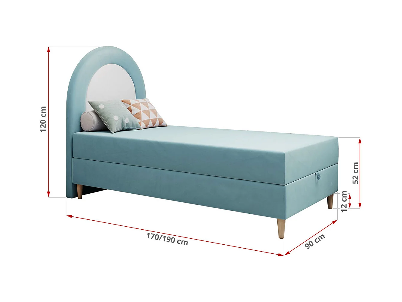 Kinderbett NEST - Boxspringbett für Kinder, mit hohem Kopfteil, Einzelbett mit Stauraum und Matratze - 90x180 cm - Blau Velvet