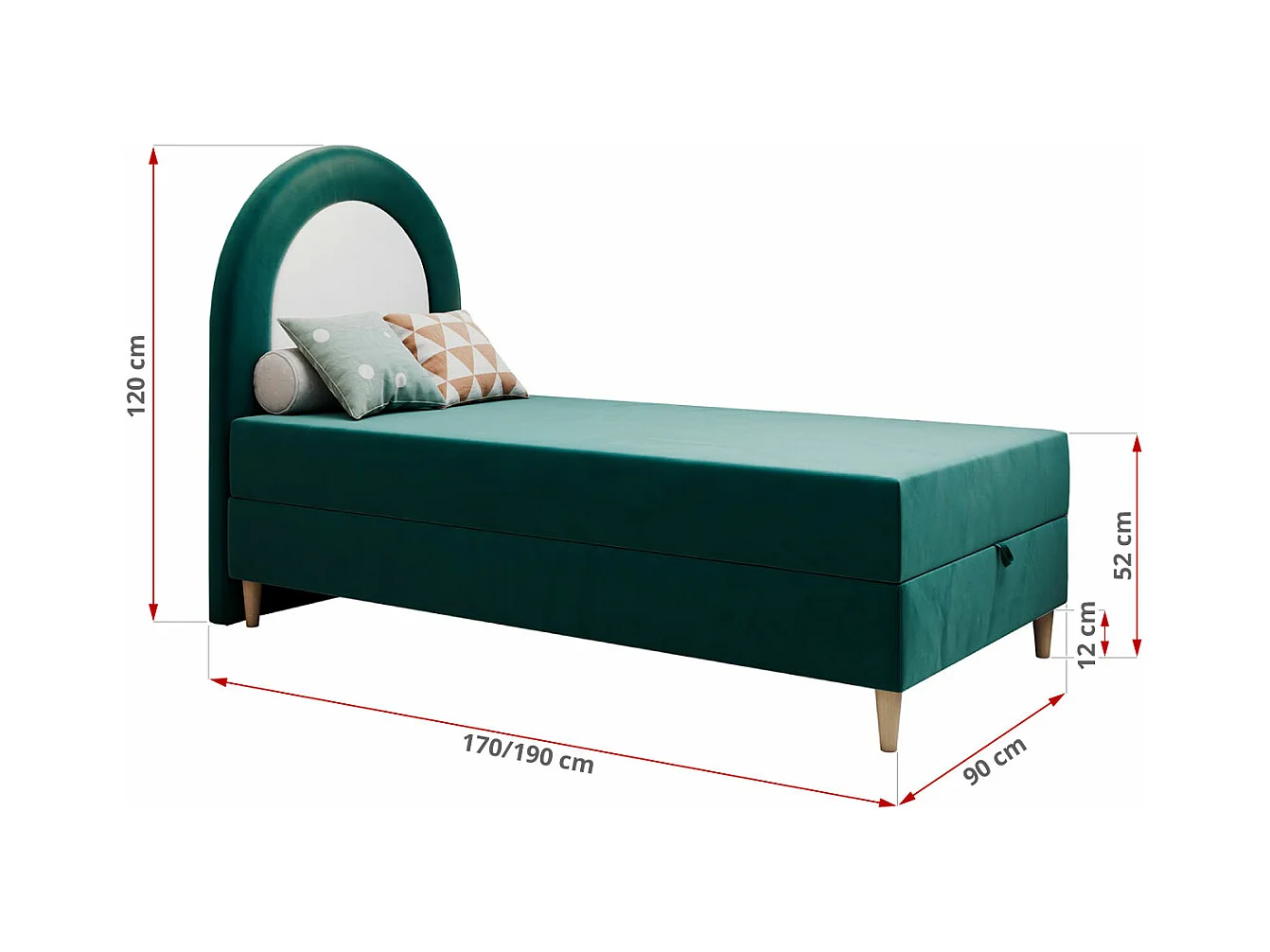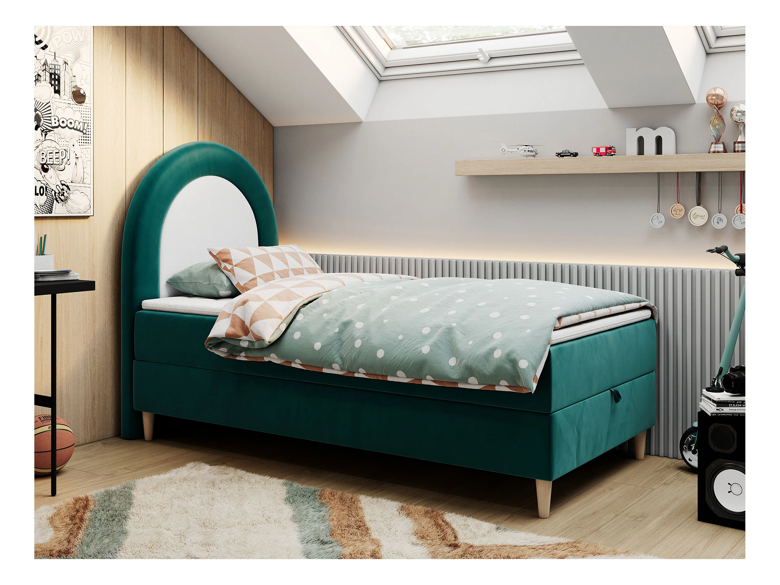 Kinderbett NEST - Boxspringbett für Kinder, mit hohem Kopfteil, Einzelbett mit Stauraum und Matratze - 90x180 cm - Dunkelgrün Velvet