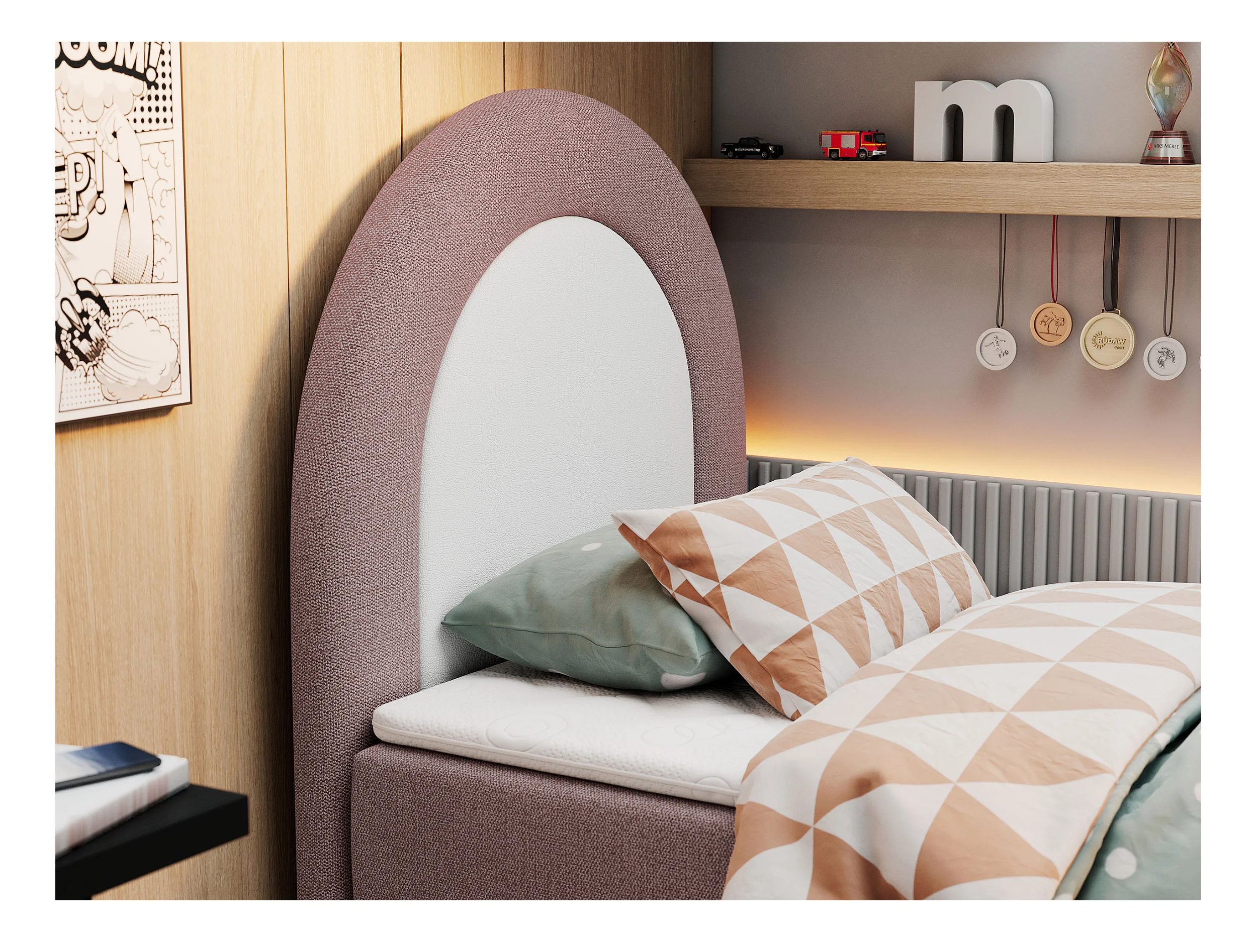Kinderbett NEST - Boxspringbett für Kinder, mit hohem Kopfteil, Einzelbett mit Stauraum und Matratze - 90x180 cm - Rosa Strukture