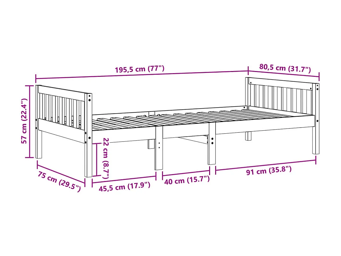 Kinderbett ohne Matratze Weiß 75x190 cm Massivholz Kiefer