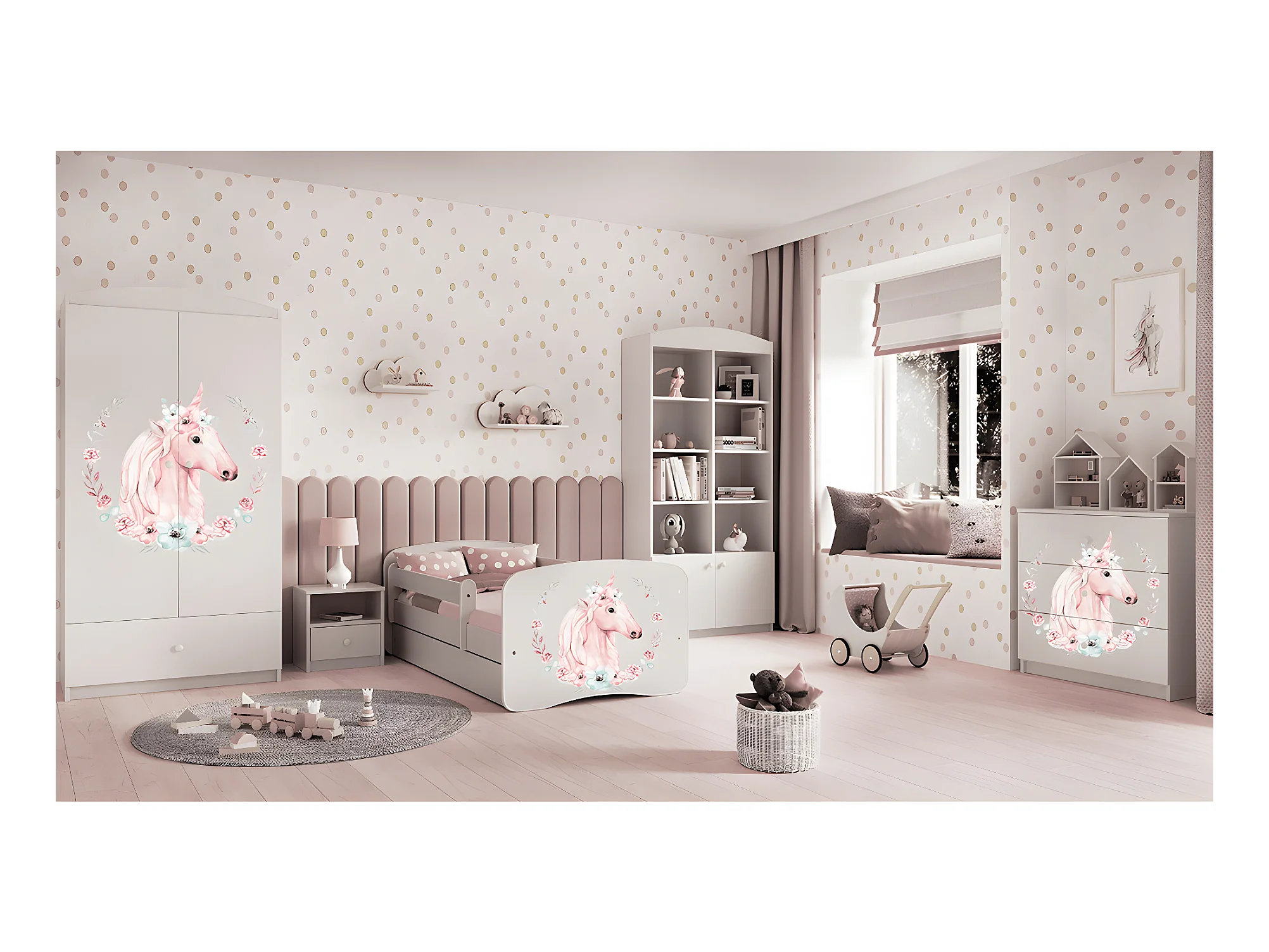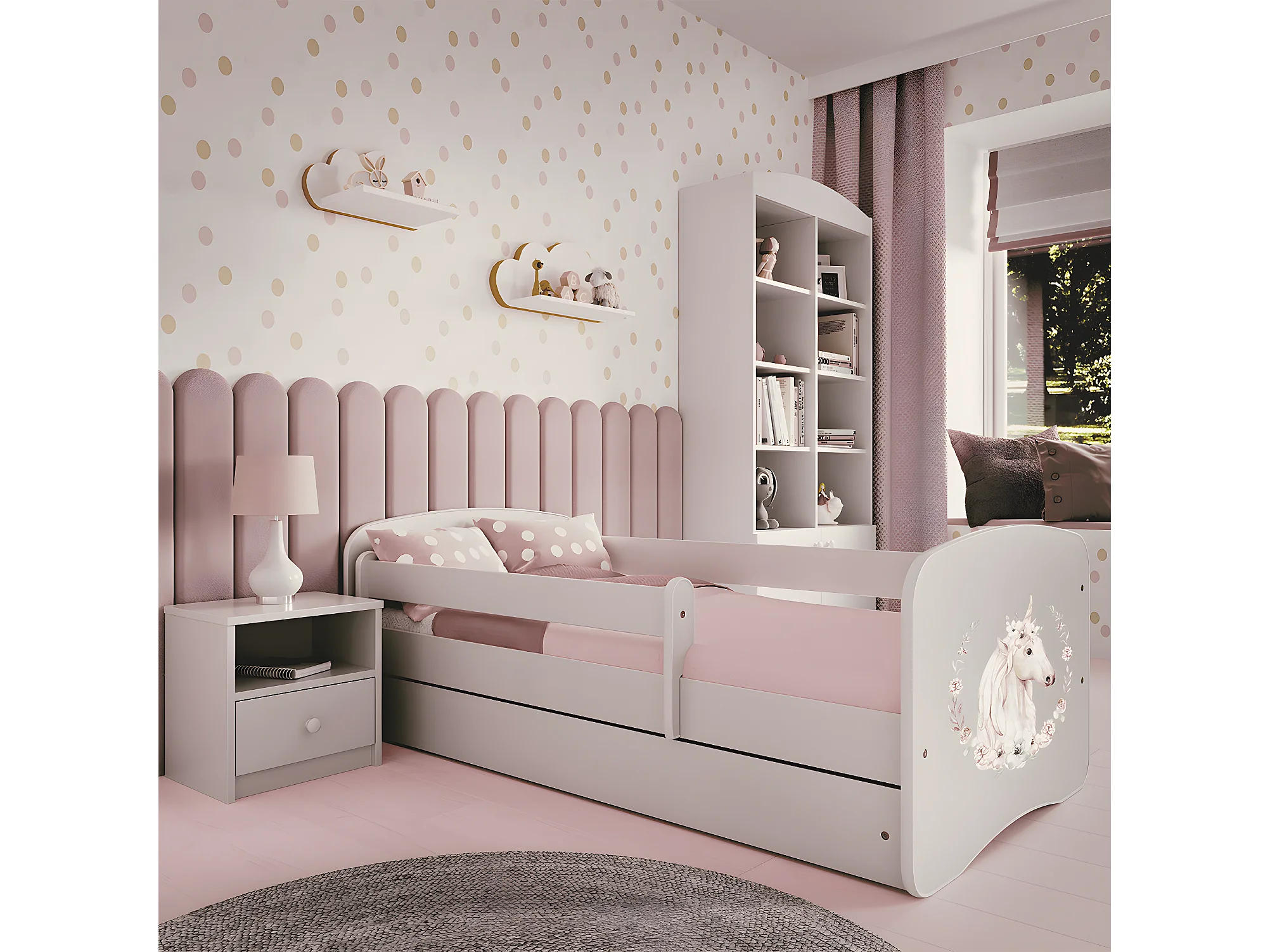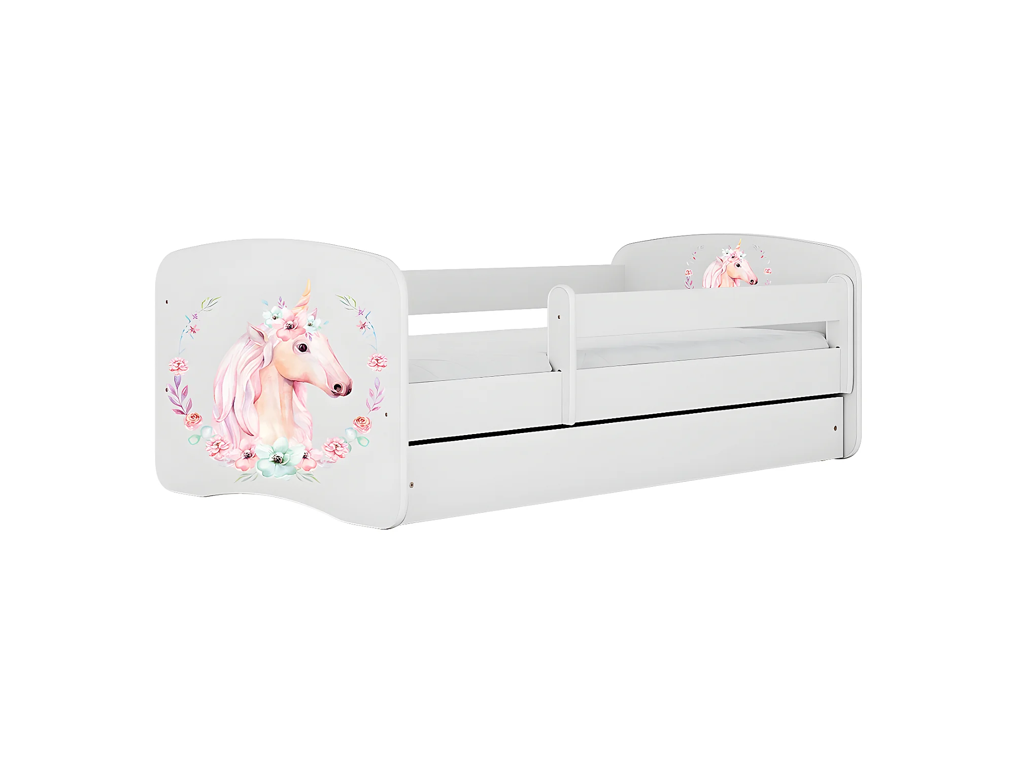 Kinderbett Pferd mit Schublade Weiß 160/80 | Jugendbett