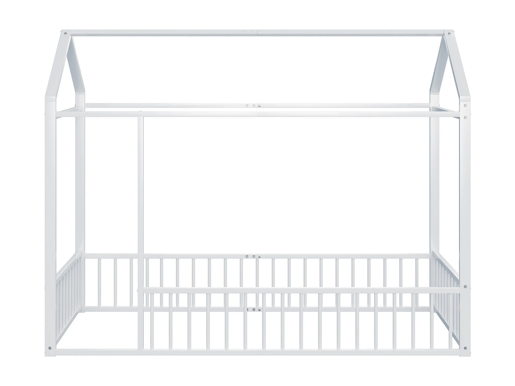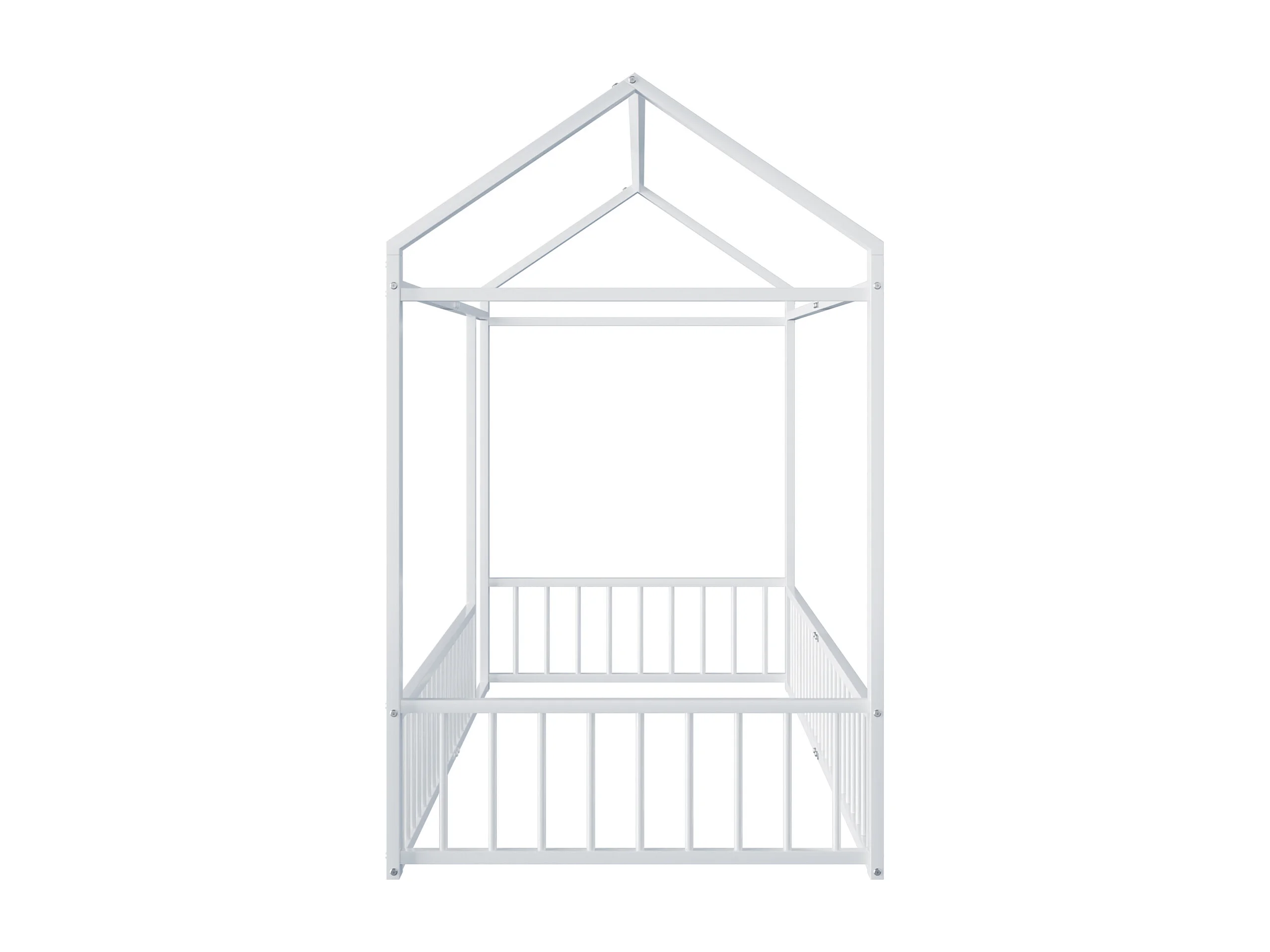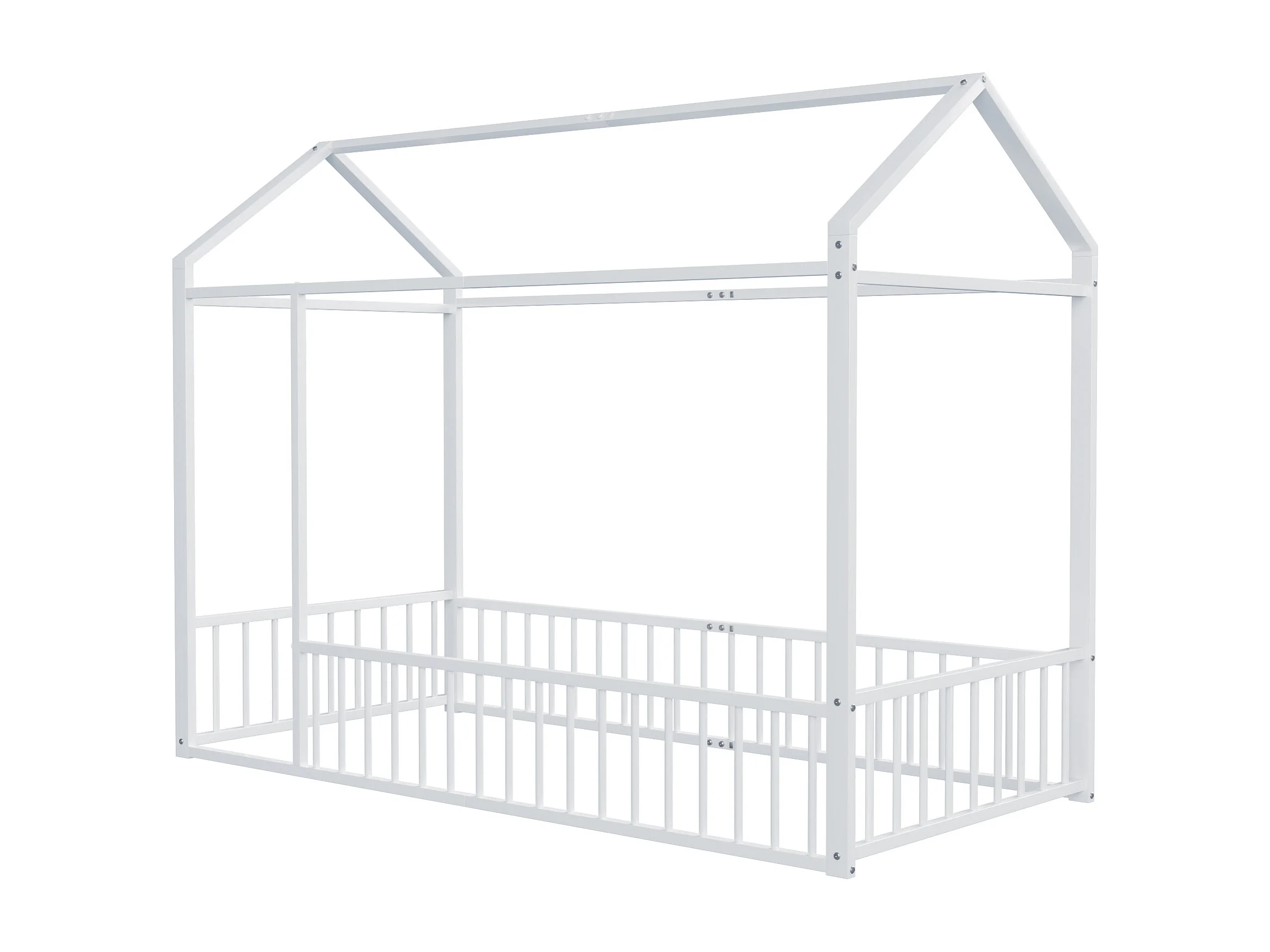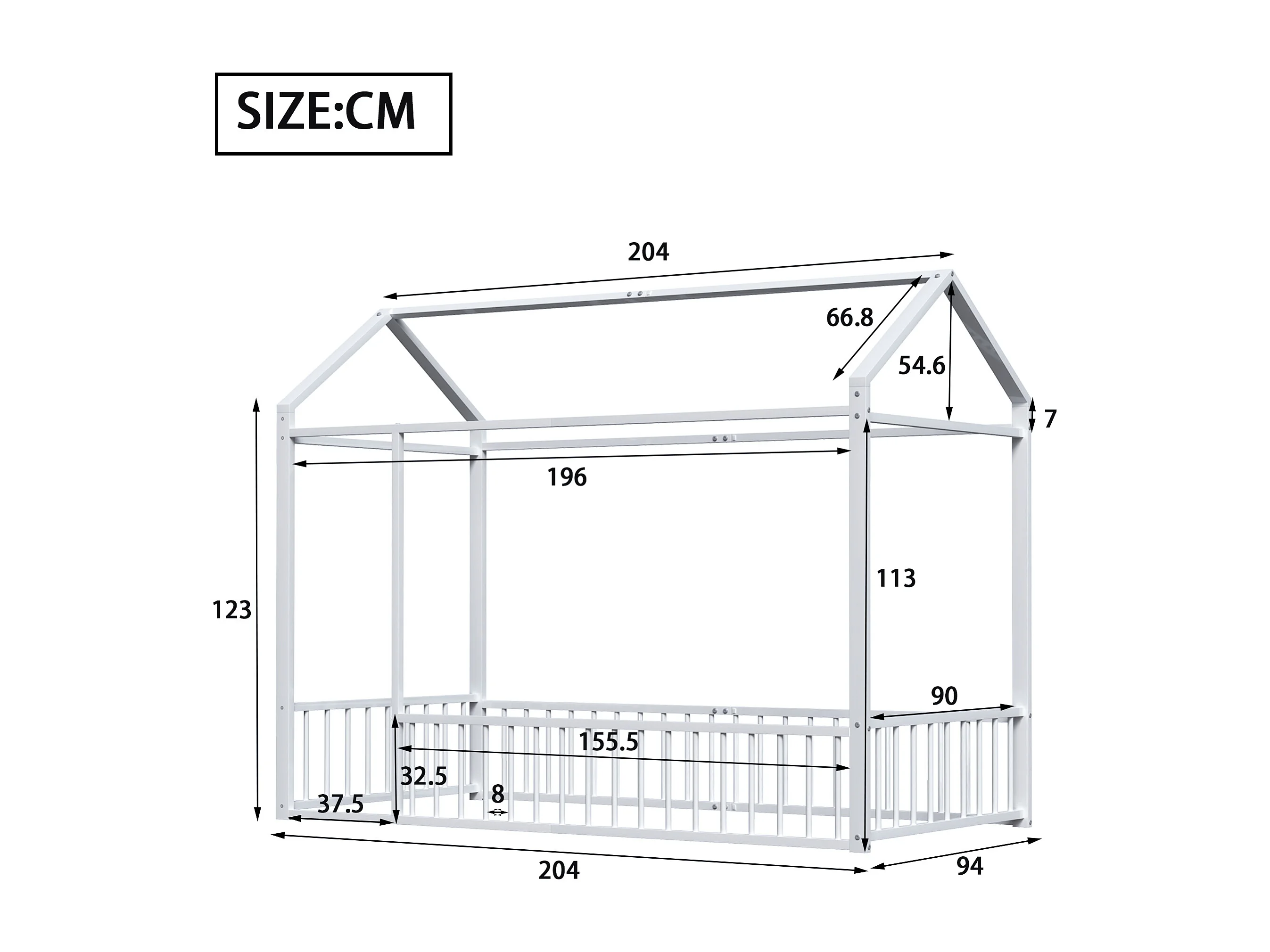 Kinderbett rosa 140 x 200 Metall Bett Familienbett Rahmen mit Zaun, geeignet für Kinder, Jugendliche, Mädchen, Jungen