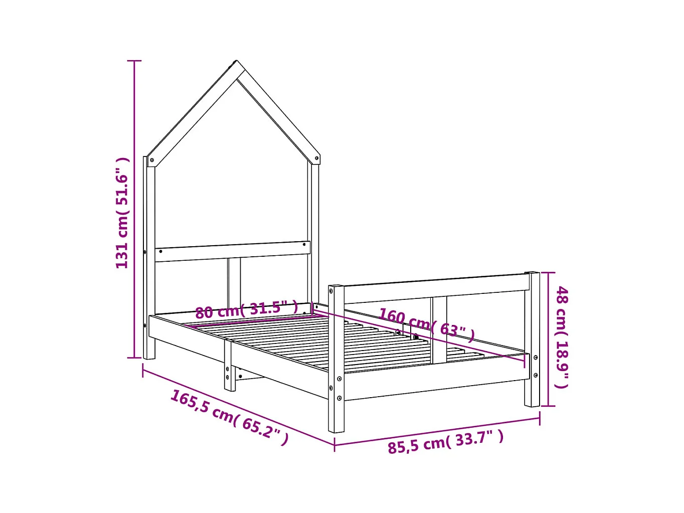 Kinderbett Schwarz 80x160 cm Massivholz Kiefer