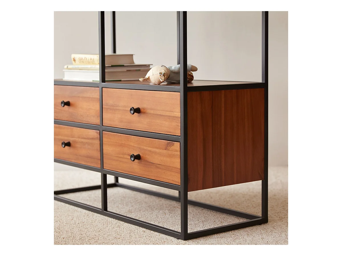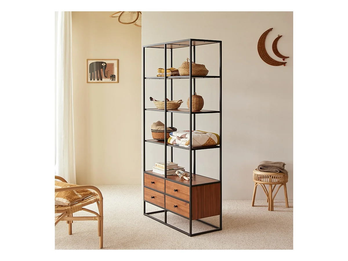 Kinderbücherregal aus massiver Akazie und Metall 175 cm Agra