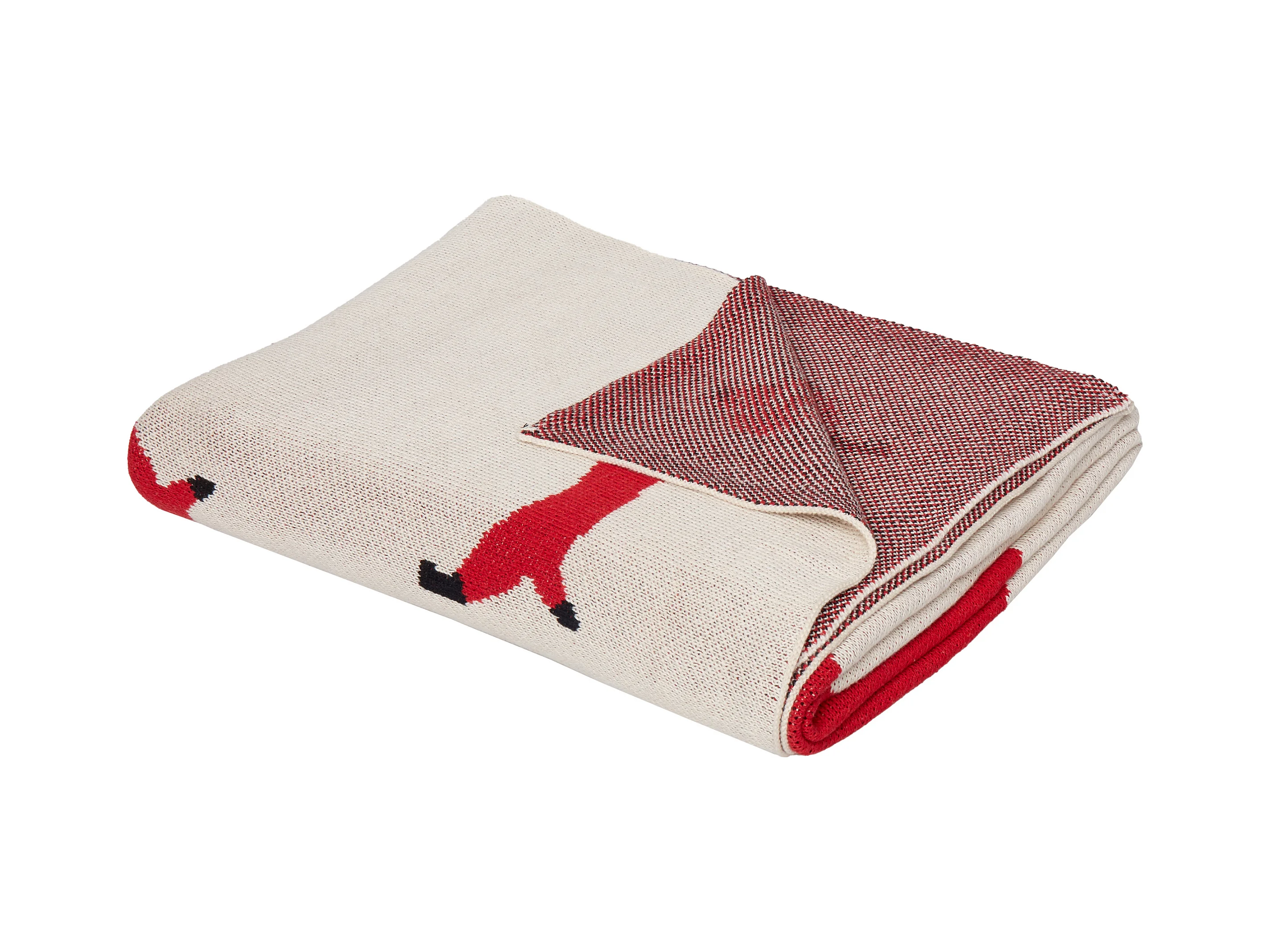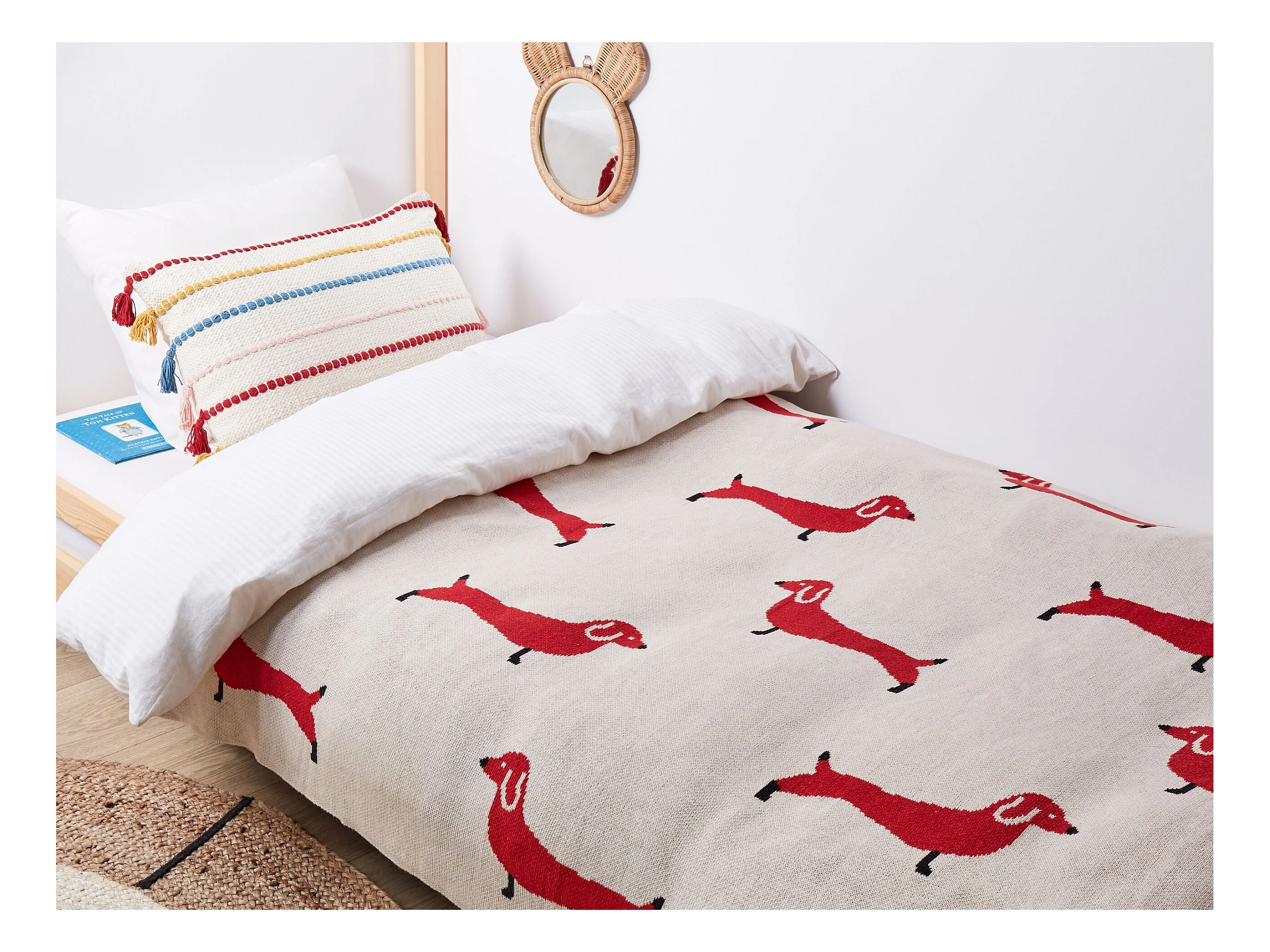 Baumwolldecke mit Hundemotiv Überwurf 130 x 170 cm Beige und Rot Reerh