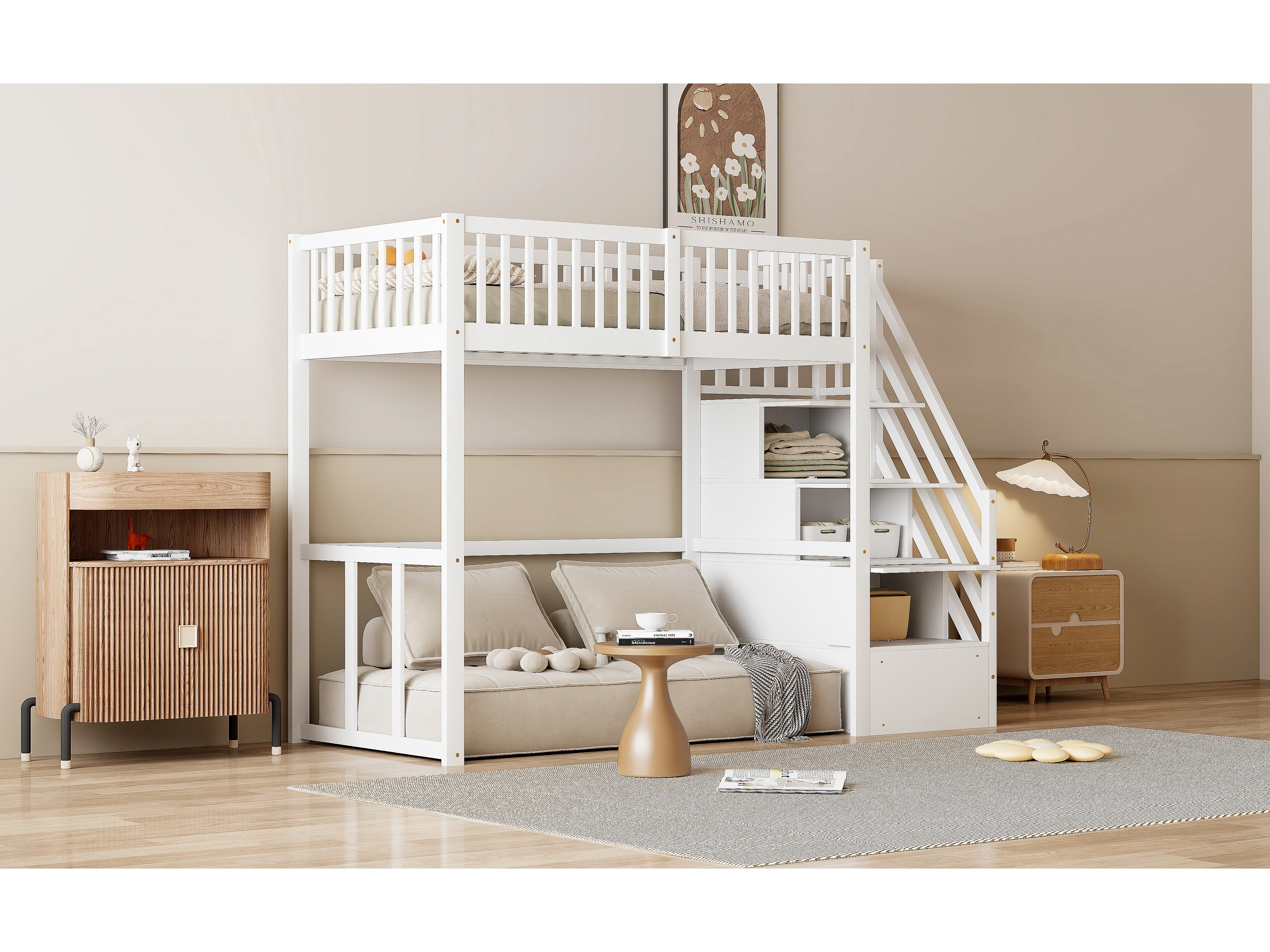Kinderhochbett - 90 x 200 cm - mit Stauraum in der Treppe - Holz + MDF - weiß