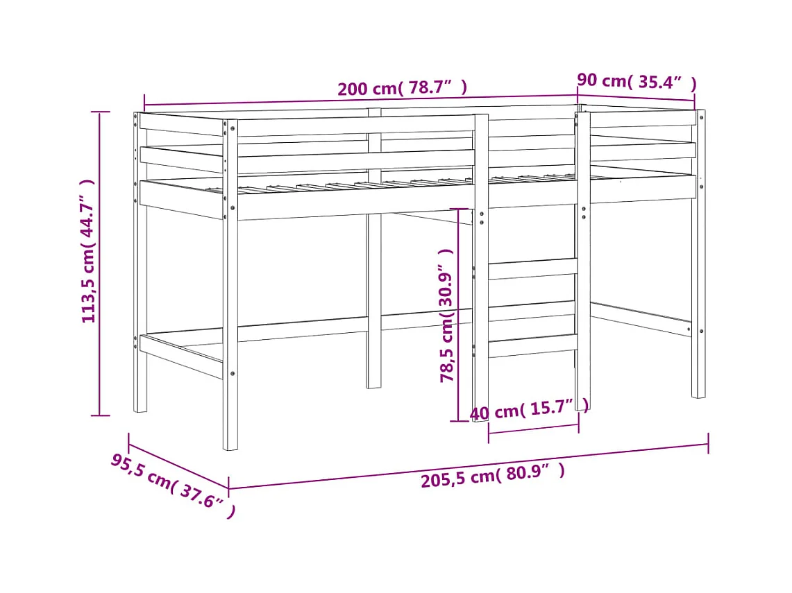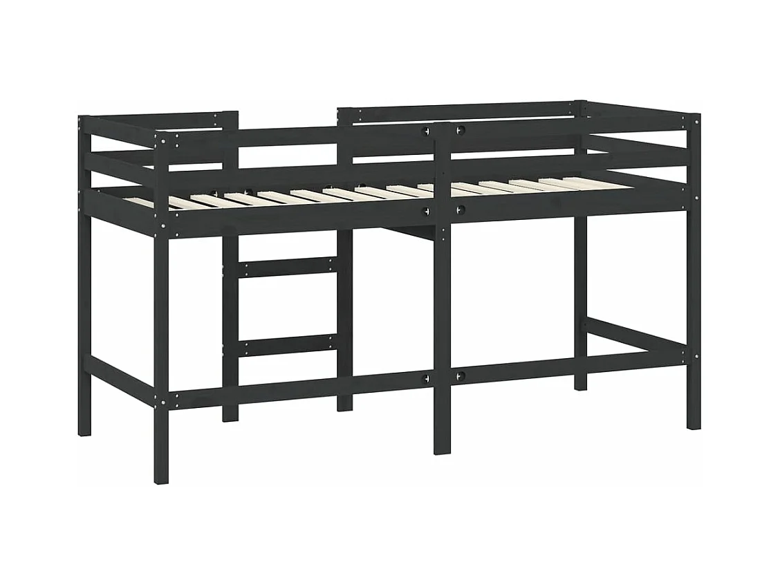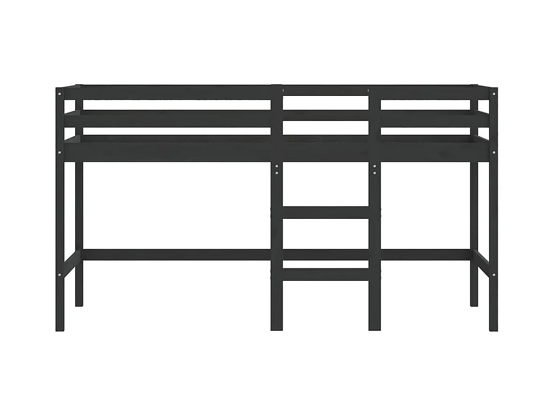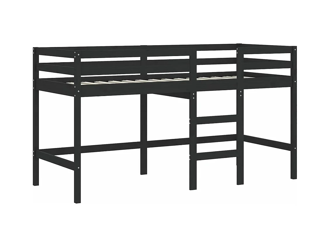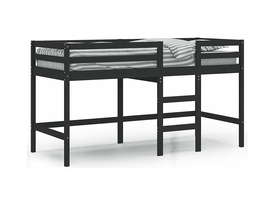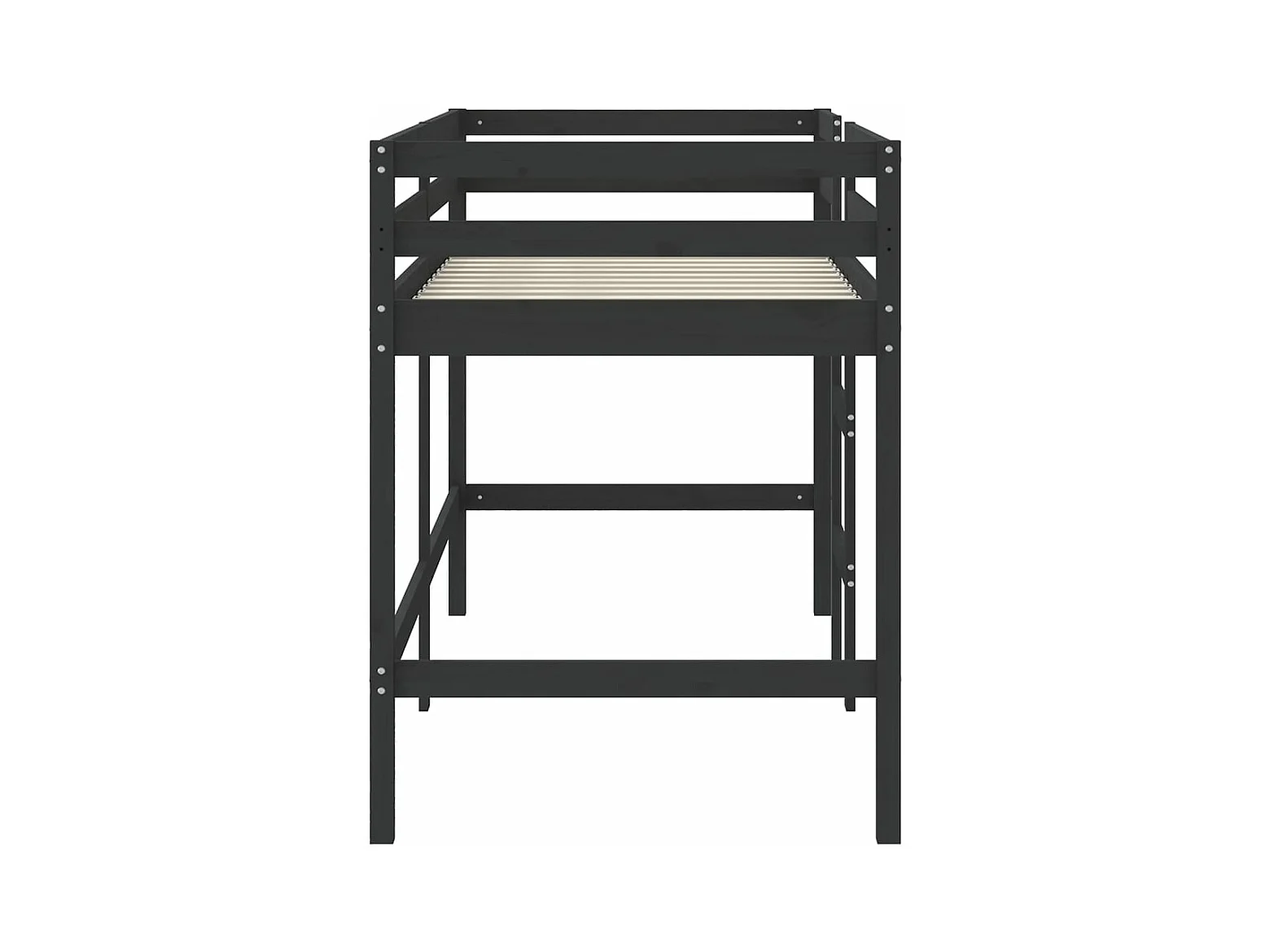 Kinderhochbett mit Leiter Schwarz 90x200 cm Massivholz Kiefer