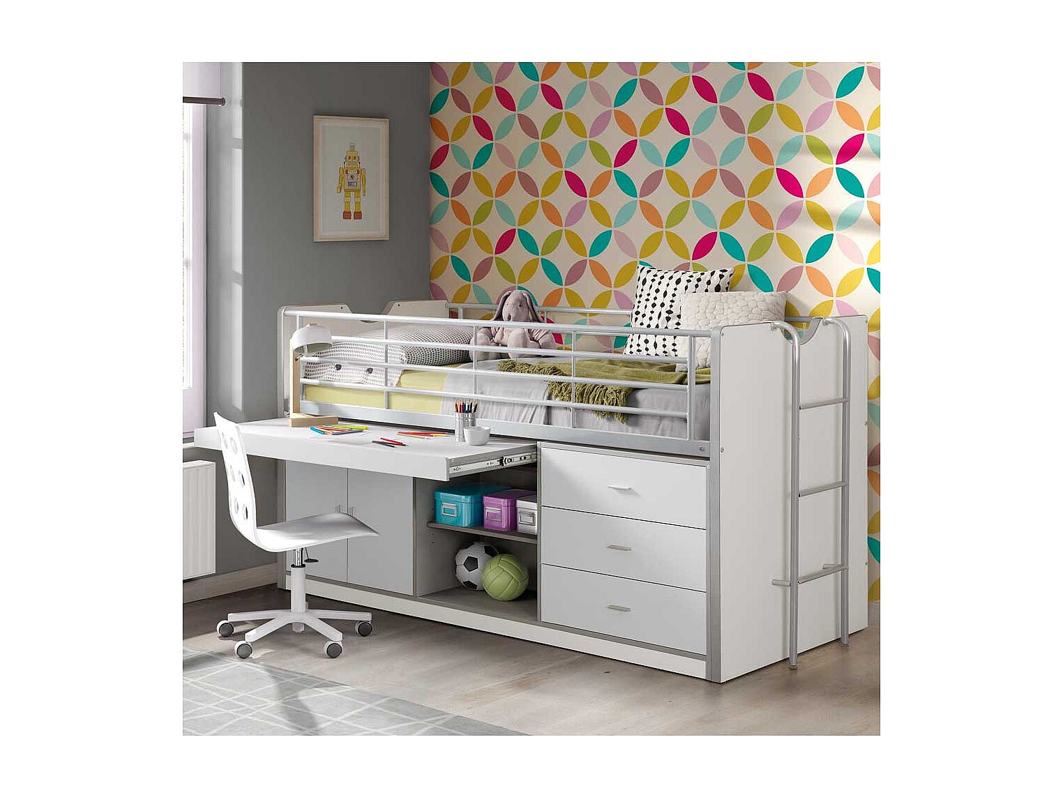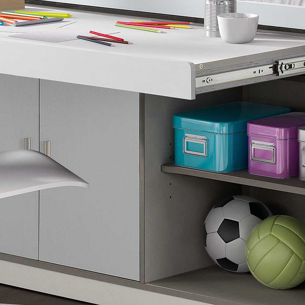 Kinderhochbett mit Schreibtisch Weiß