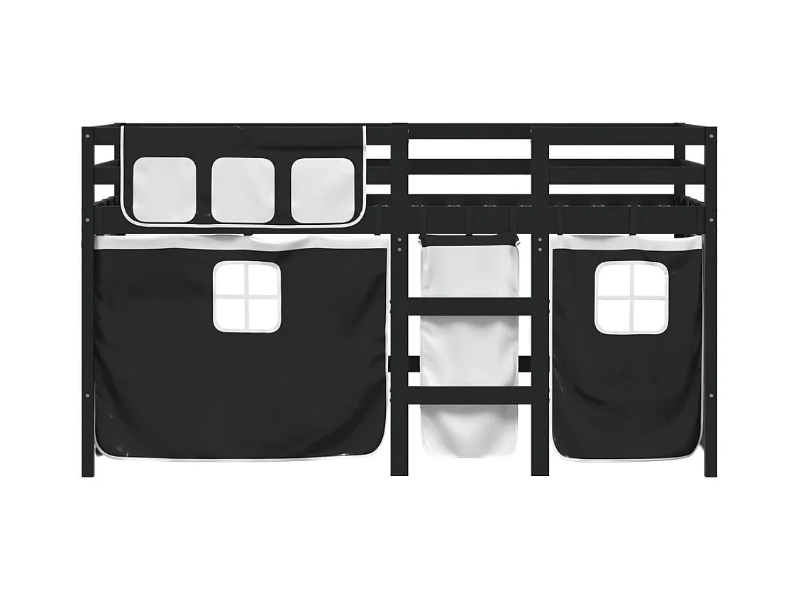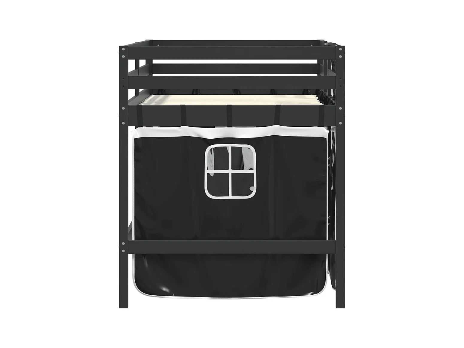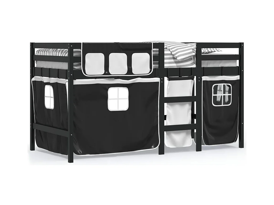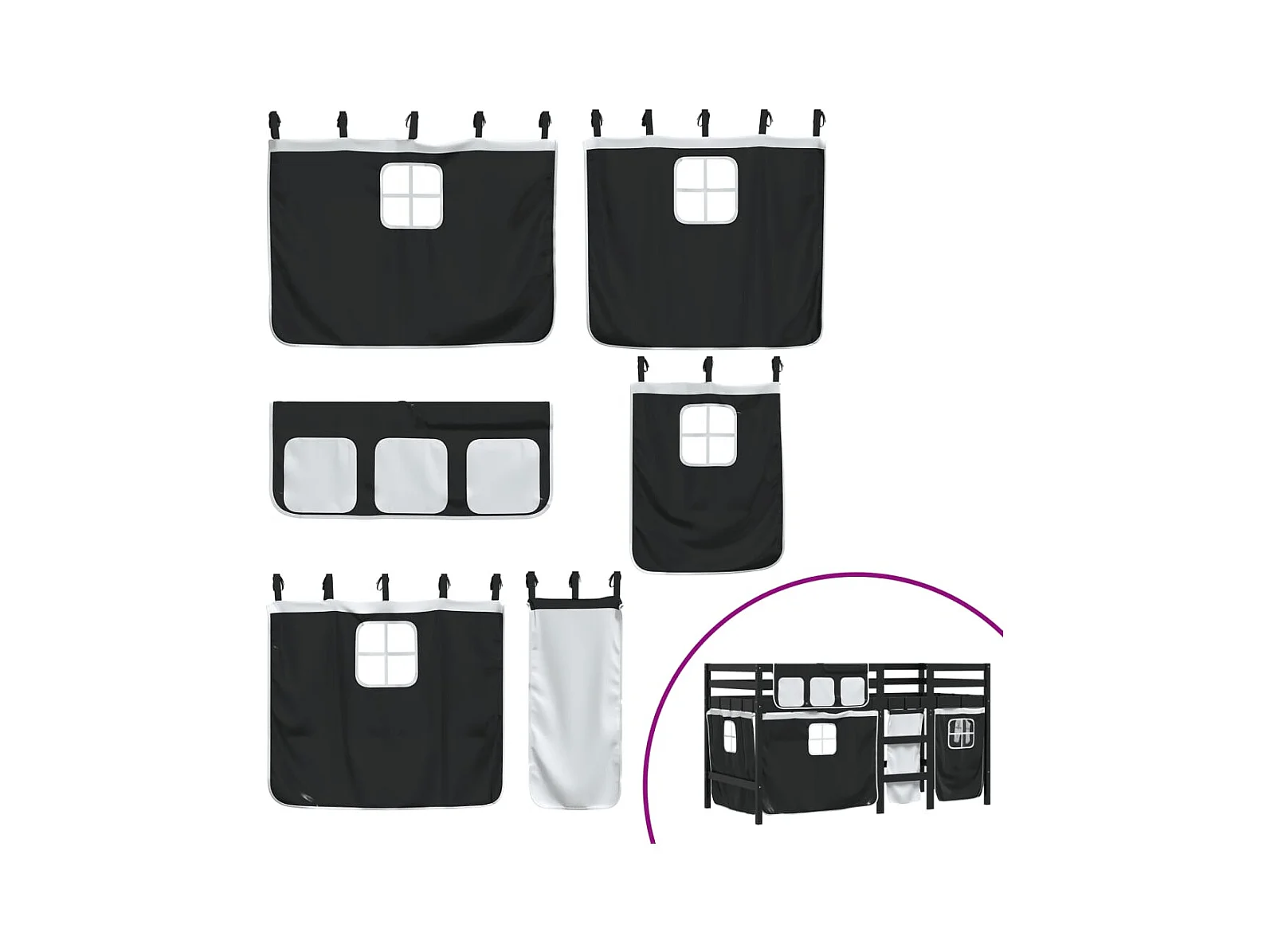 Kinderhochbett mit Vorhängen Weiß Schwarz 90x200 cm Kiefernholz