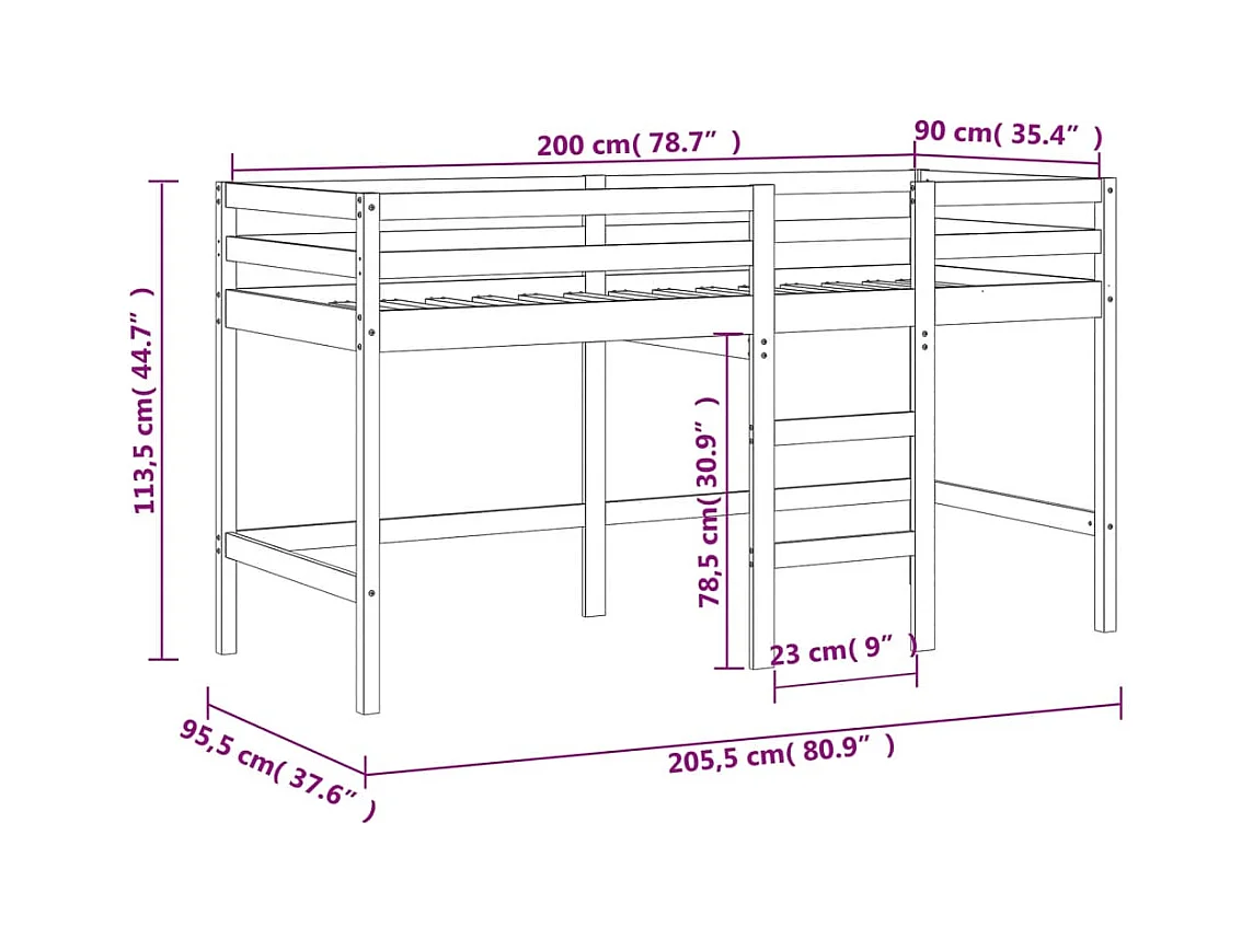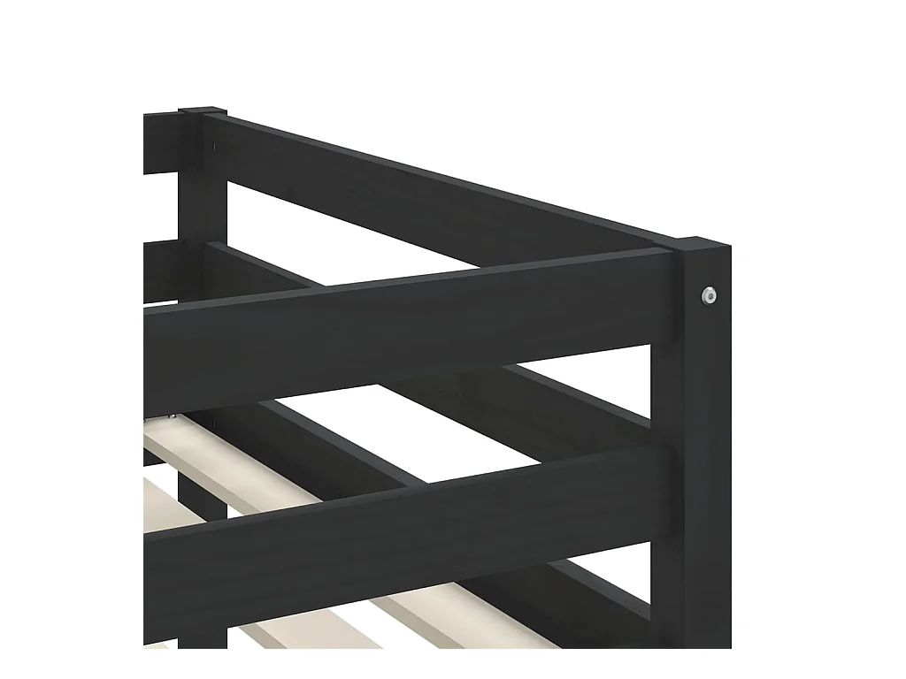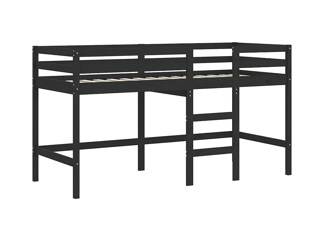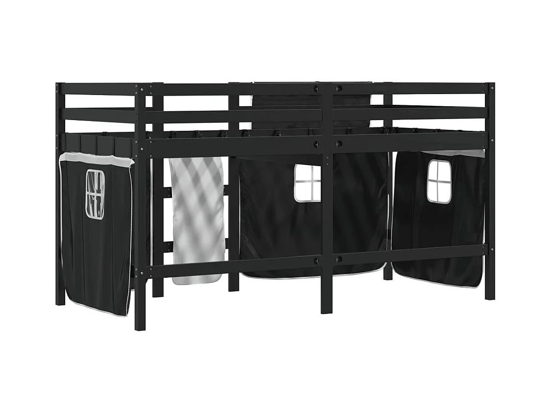 Kinderhochbett mit Vorhängen Weiß Schwarz 90x200 cm Kiefernholz
