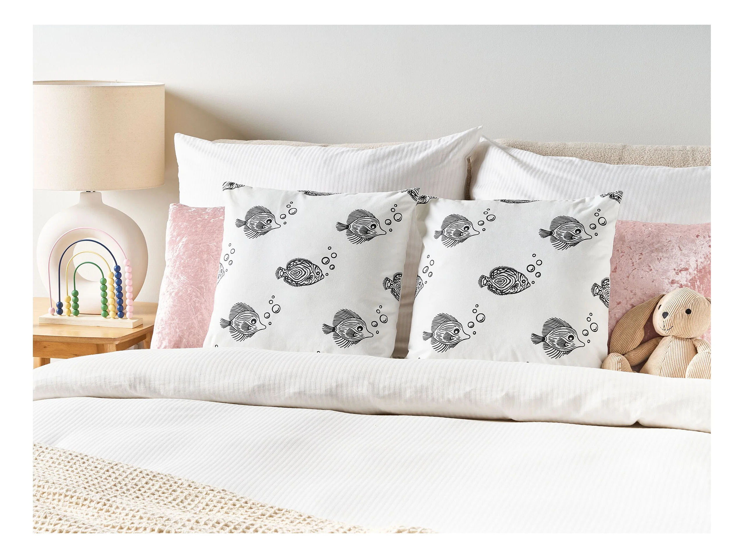 Set aus 2 Zierkissen mit abnehmbaren Bezügen für Kinder aus weißer Baumwolle mit Fischmotiv 45 x 45 cm Tweedia