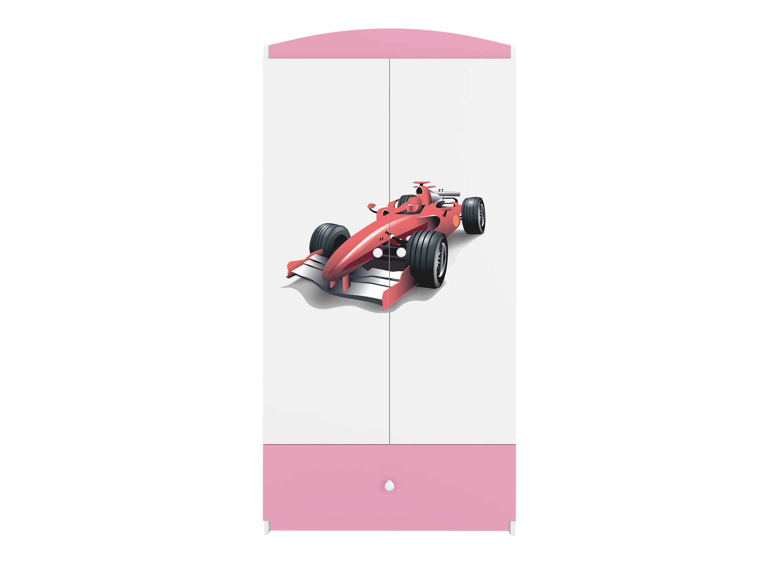 Kinderkleiderschrank Babydreams Drehtürenschrank Kleiderschrank Formel 1 Hellrosa