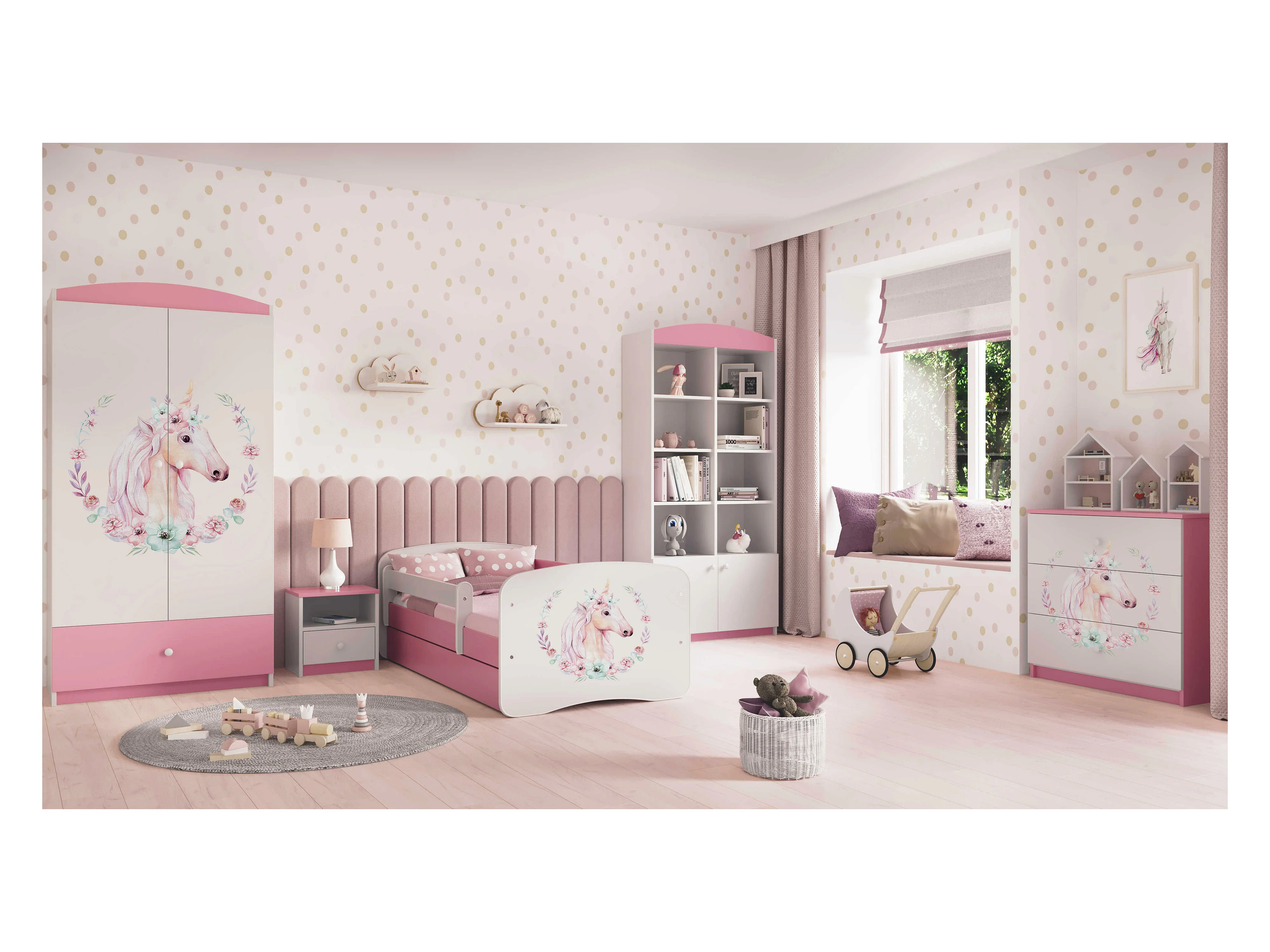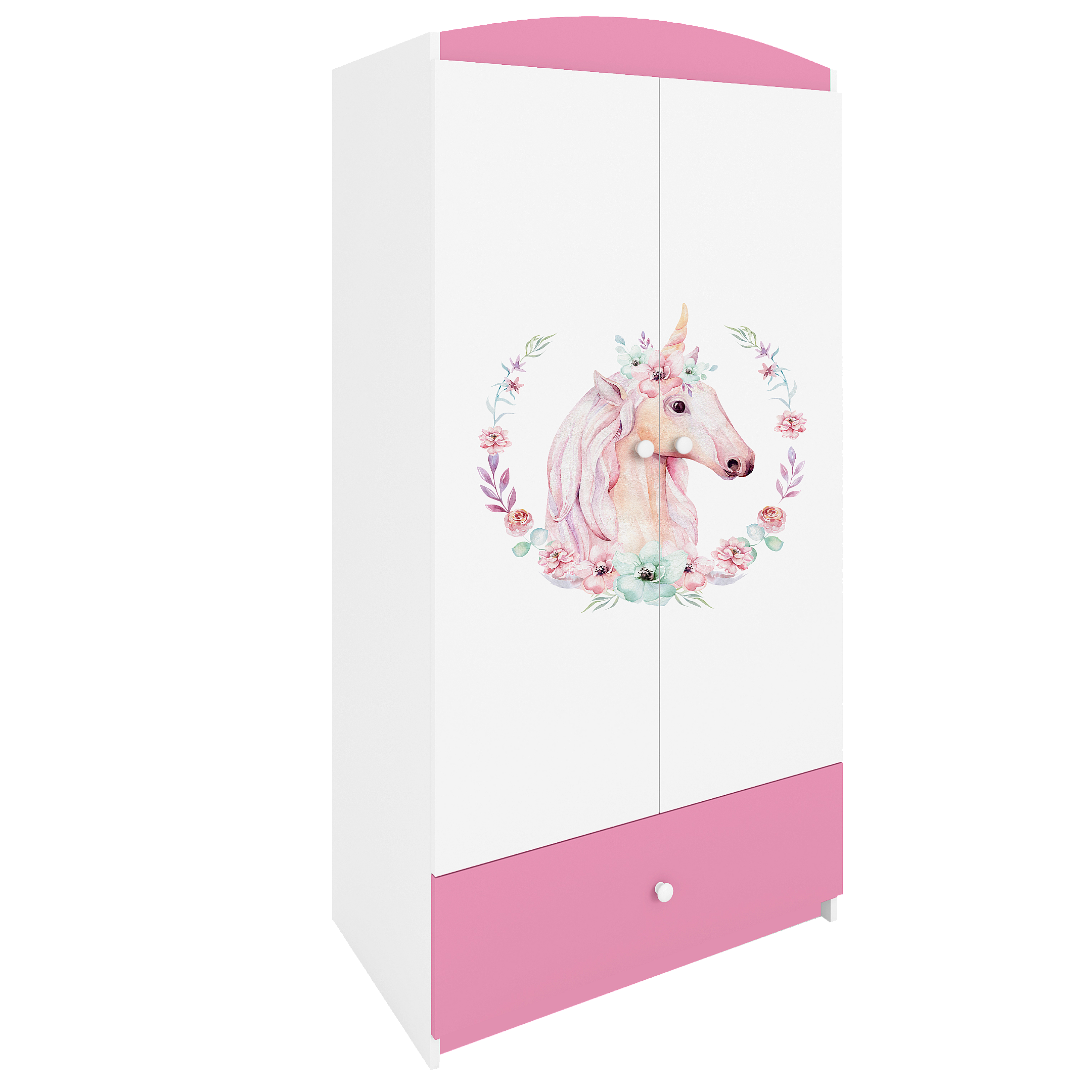 Kinderkleiderschrank Babydreams Drehtürenschrank Kleiderschrank Pferd Hellrosa