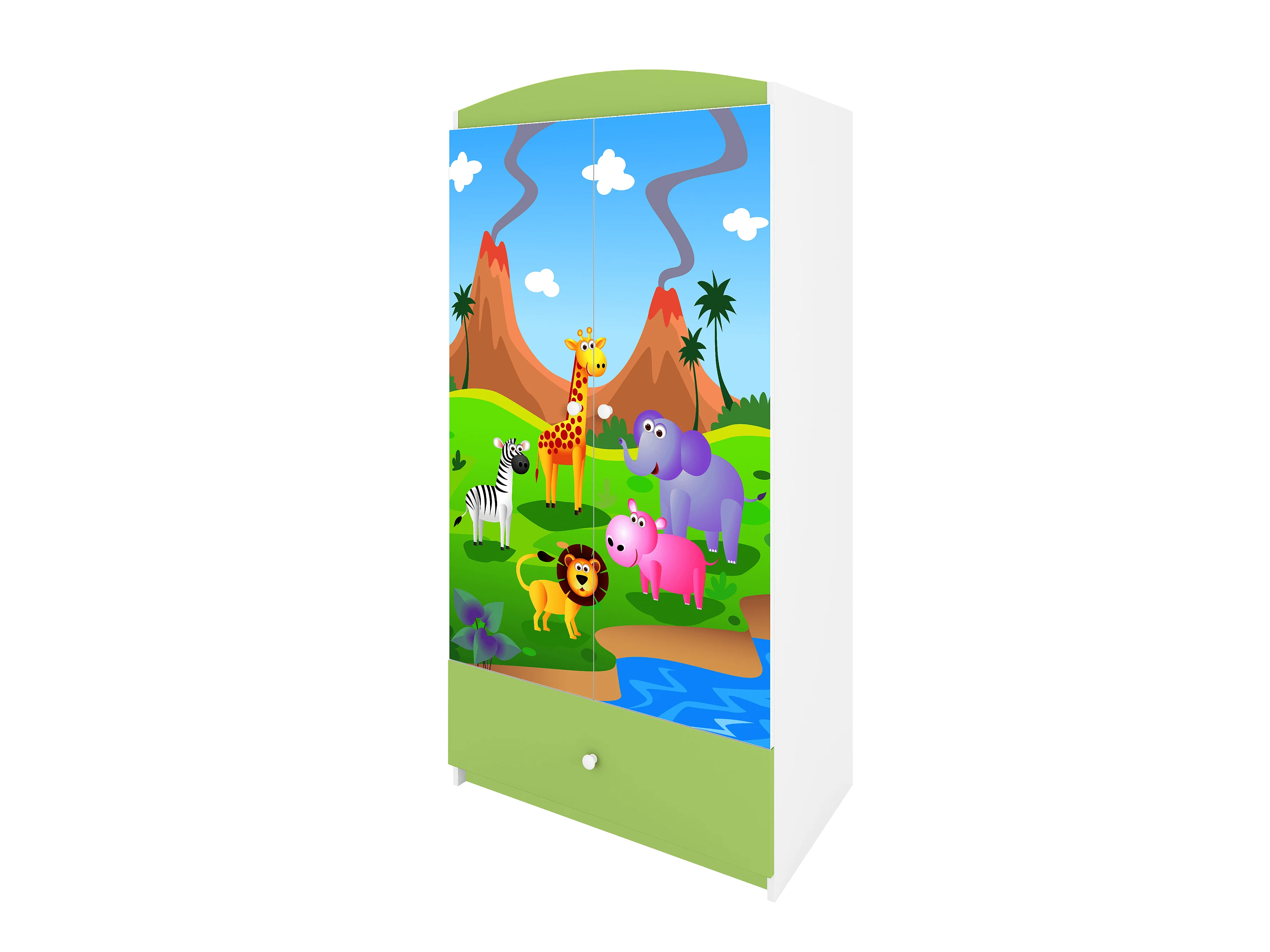 Kinderkleiderschrank Babydreams Drehtürenschrank Kleiderschrank Safari Grün
