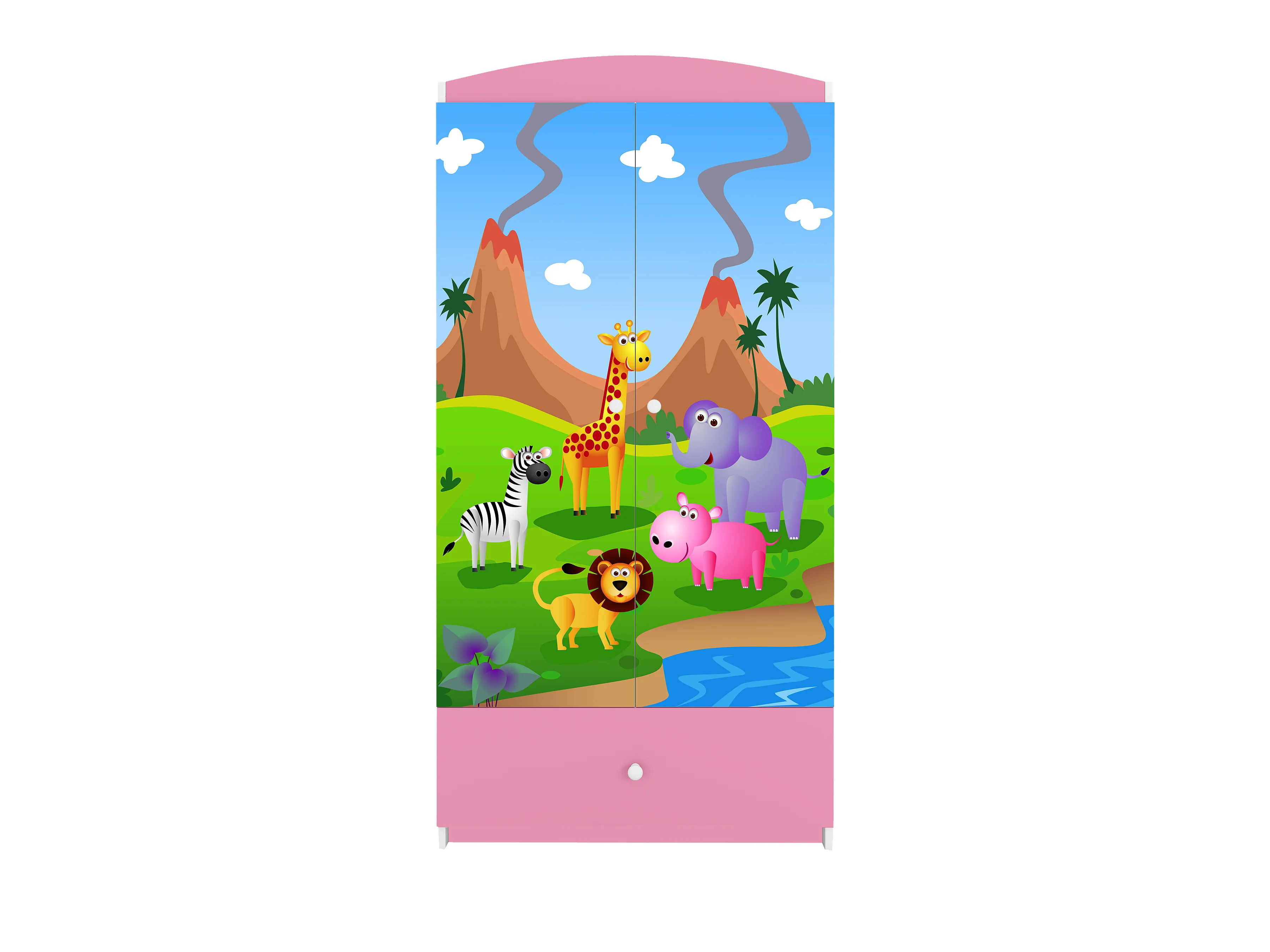 Kinderkleiderschrank Babydreams Drehtürenschrank Kleiderschrank Safari Hellrosa