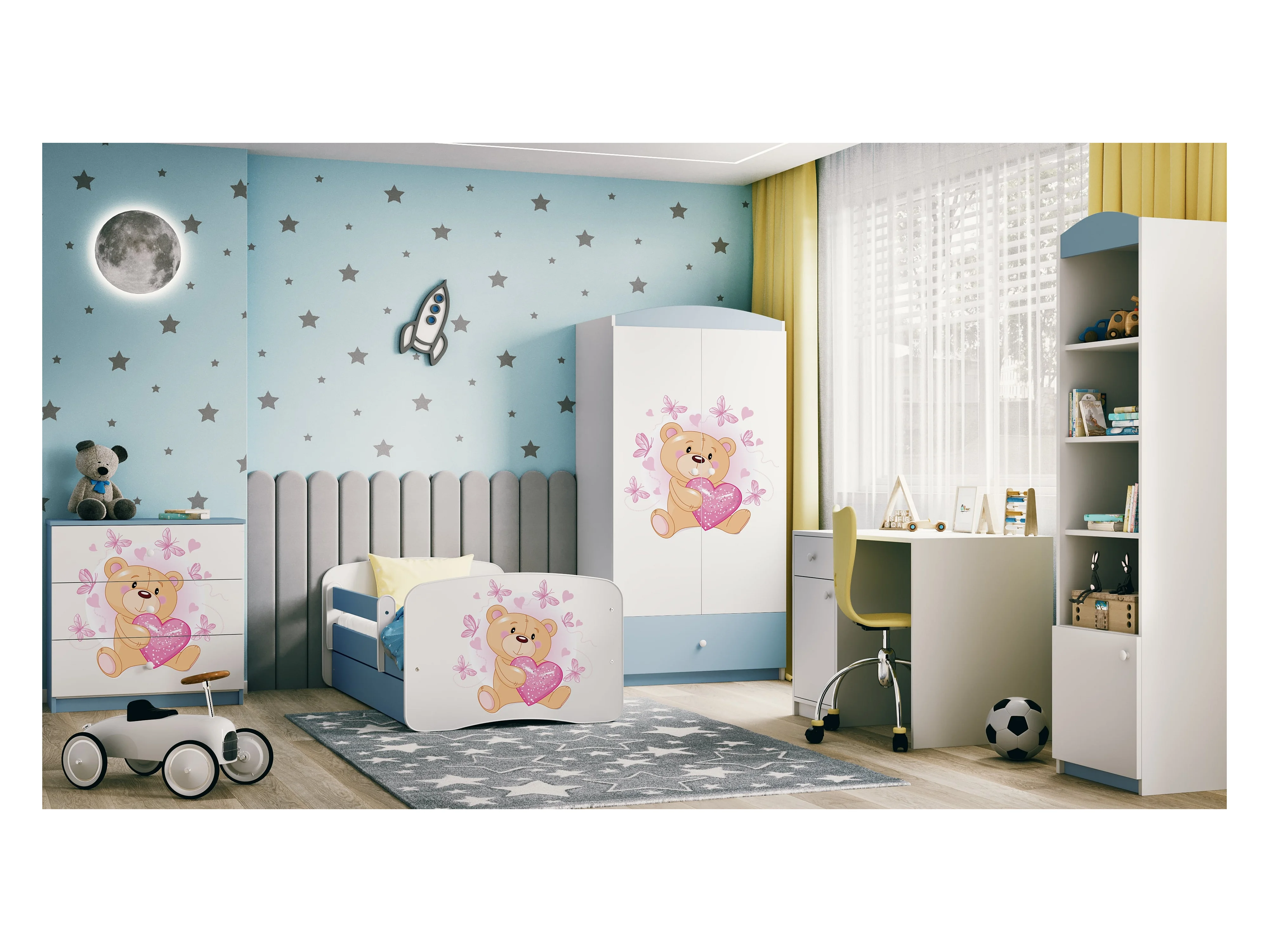 Kinderkleiderschrank Babydreams Drehtürenschrank Kleiderschrank Teddybär I Blau