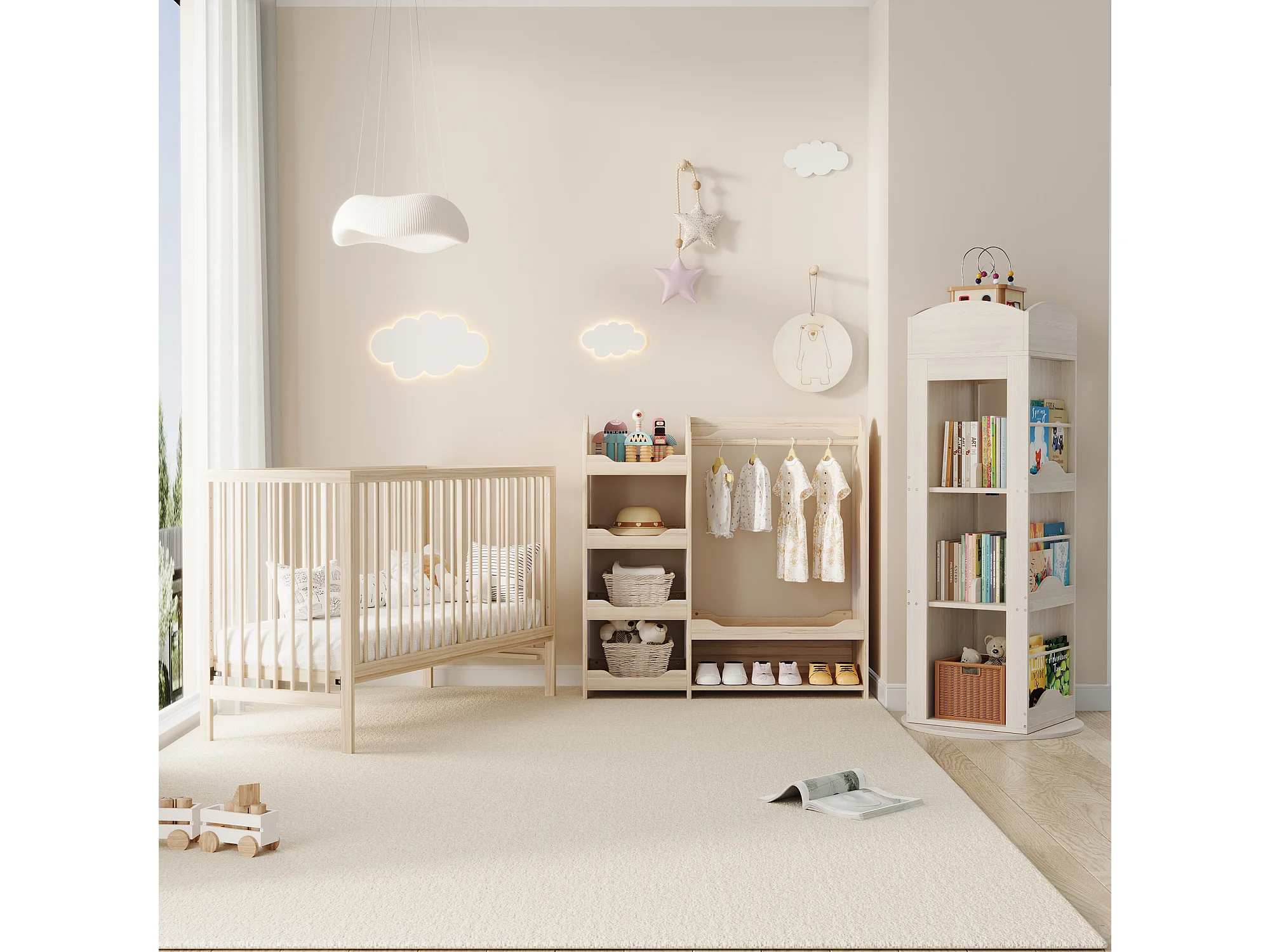 Kinderkleiderschrank mit Kleiderstange und 4 Rollen – 110 x 39 x 110 cm – Holz – Natur