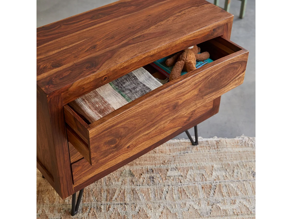 Kinderkommode Bonnie aus Sheesham-Holz, mit 3 Schubladen