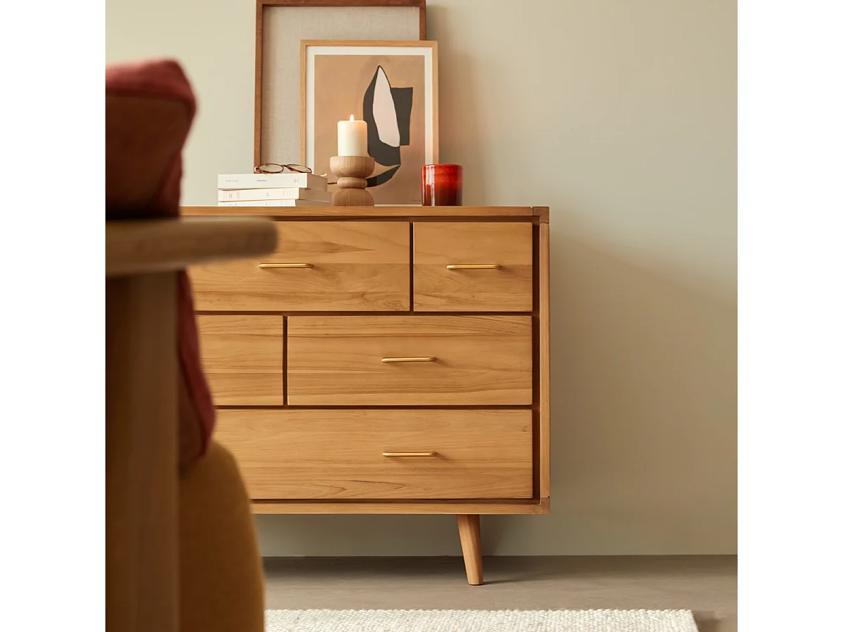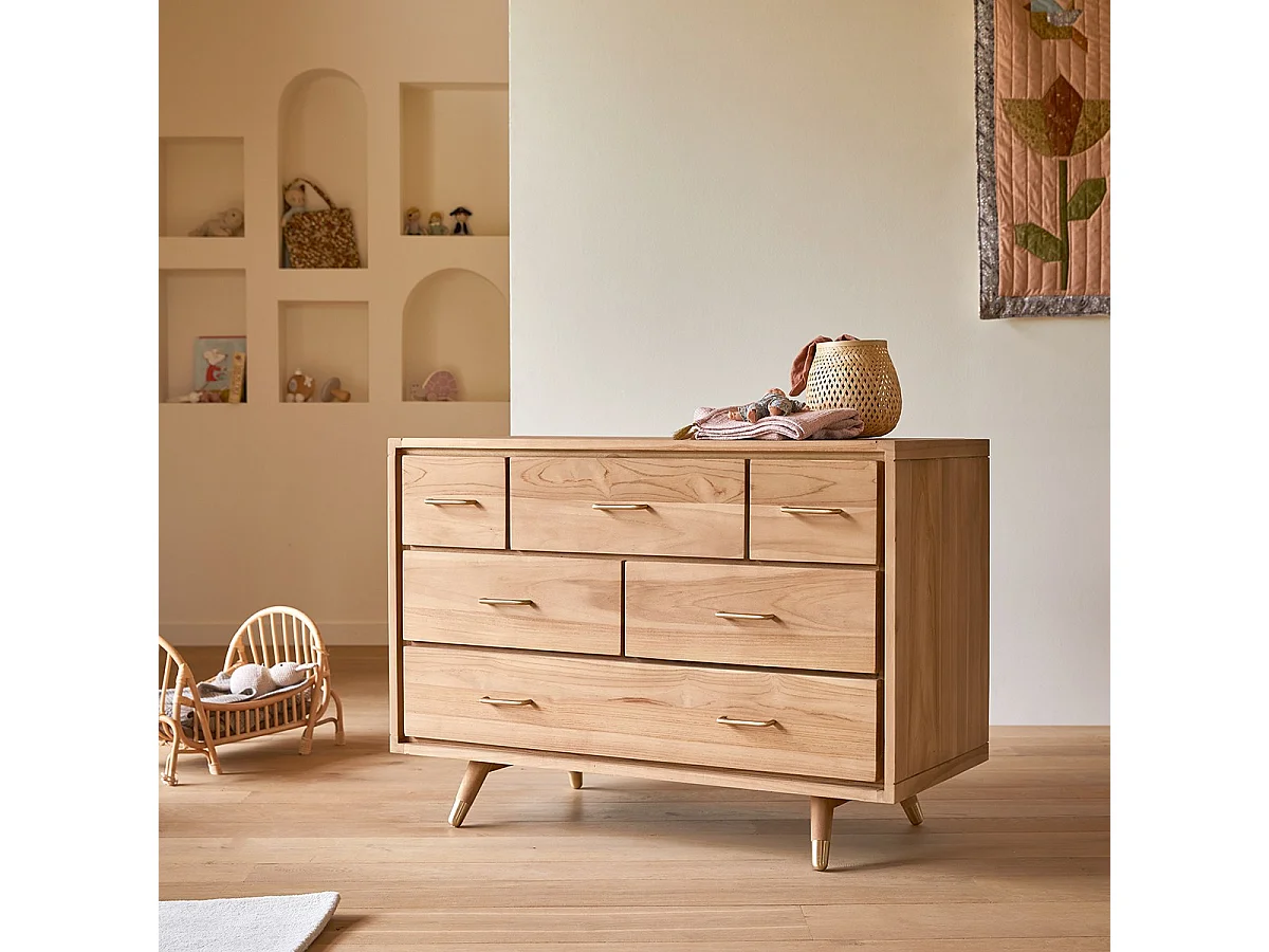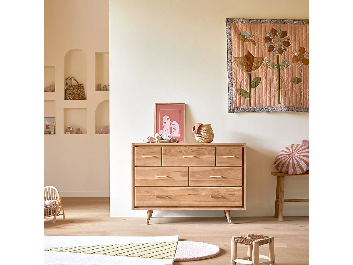 Kinderkommode Kort mit 6 Schubladen, aus massivem Teakholz