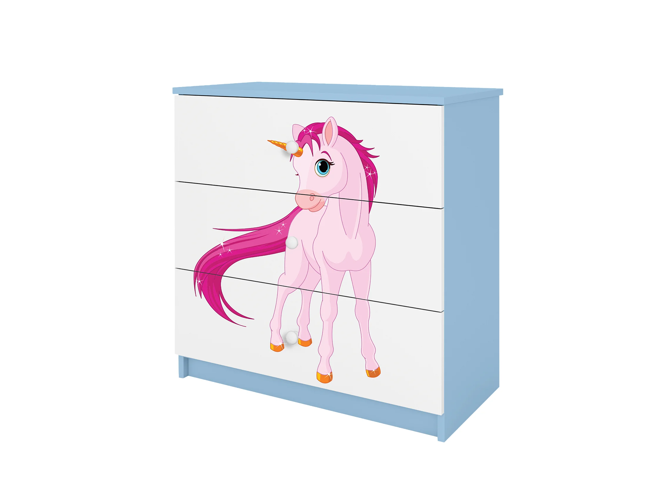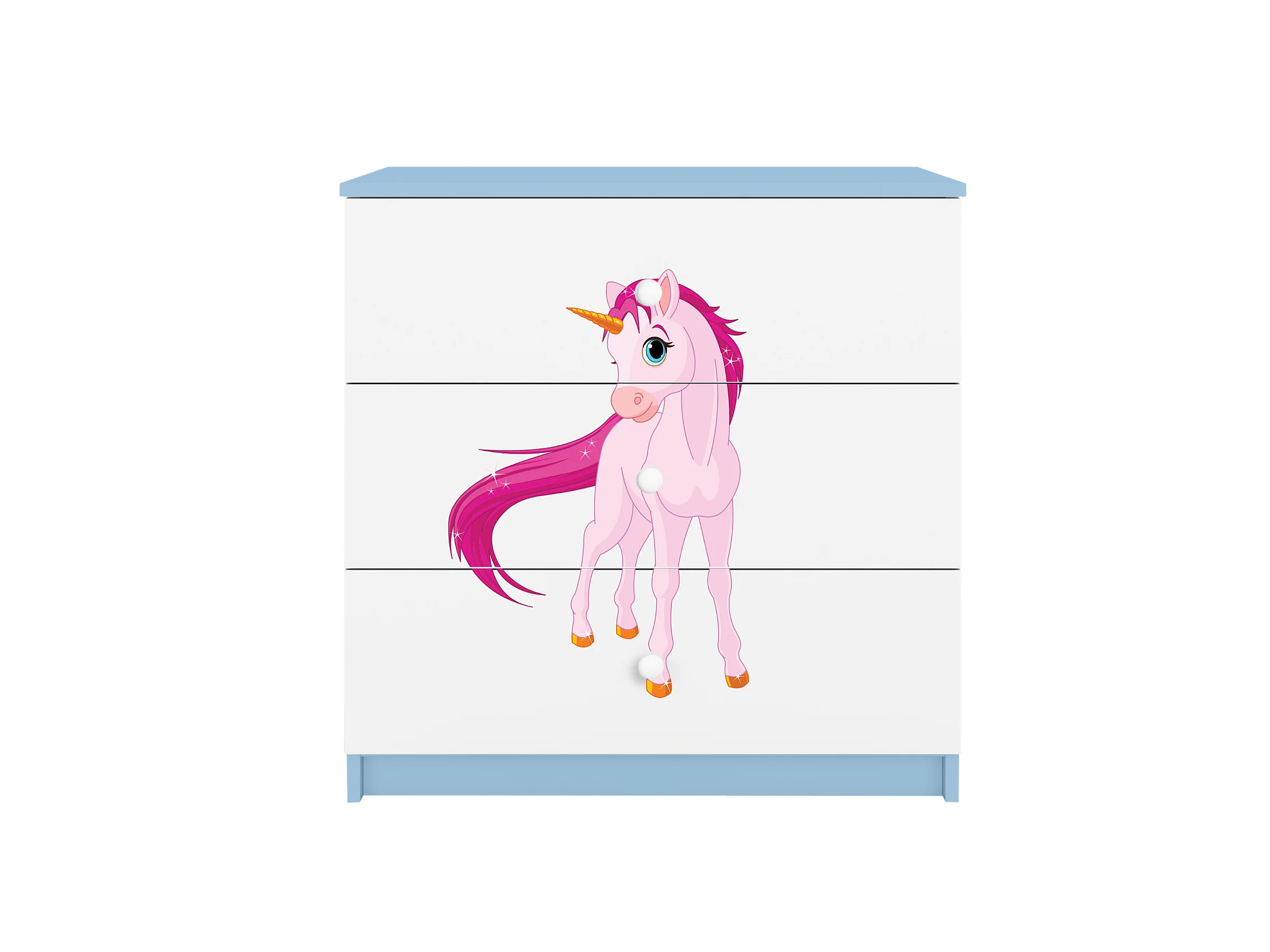 Kinderkommode mit Schubladen Einhorn in der Farbe Blau Babydreams