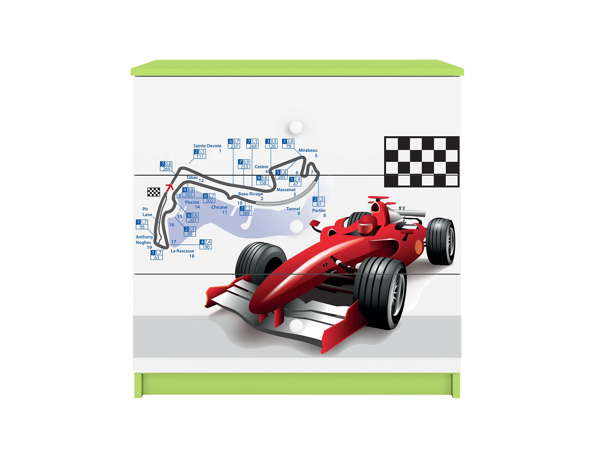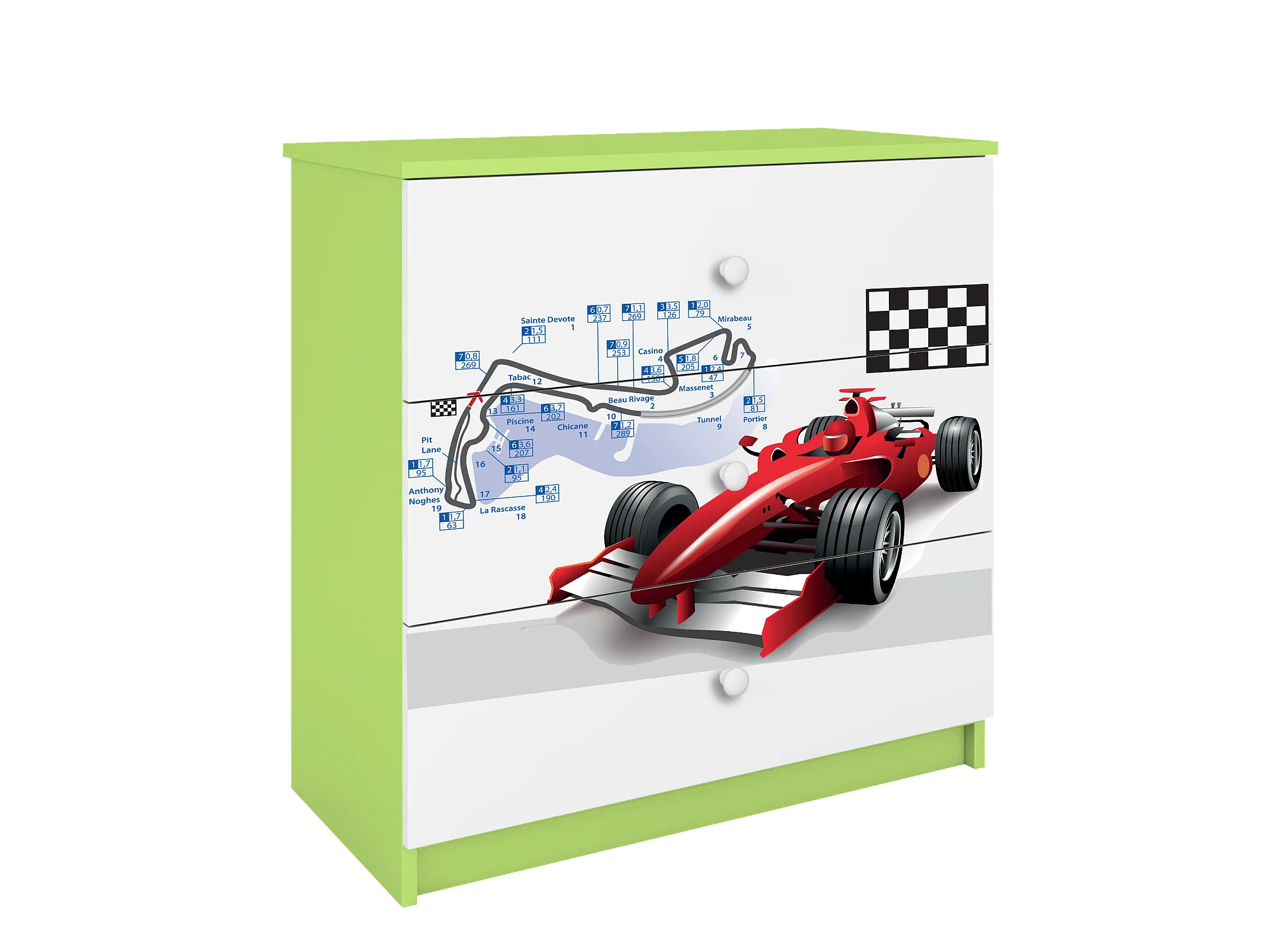 Kinderkommode mit Schubladen Formel 1 in der Farbe Grün Babydreams
