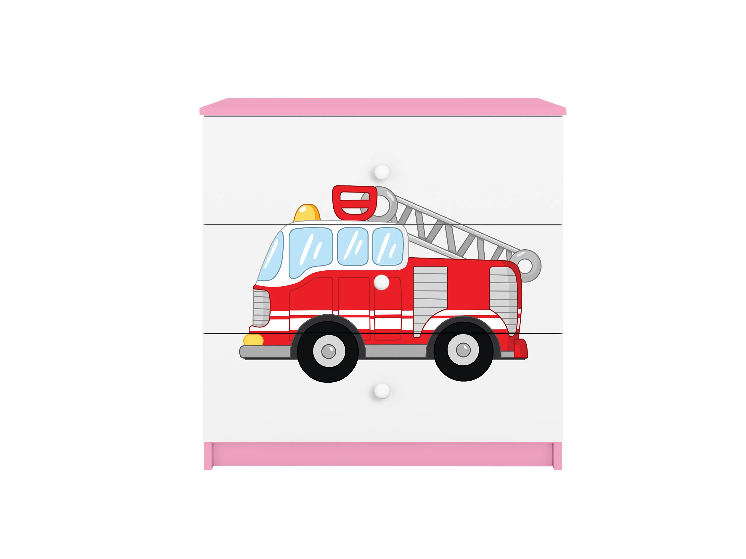 Kinderkommode mit Schubladen Löschzug in der Farbe Rosa Babydreams