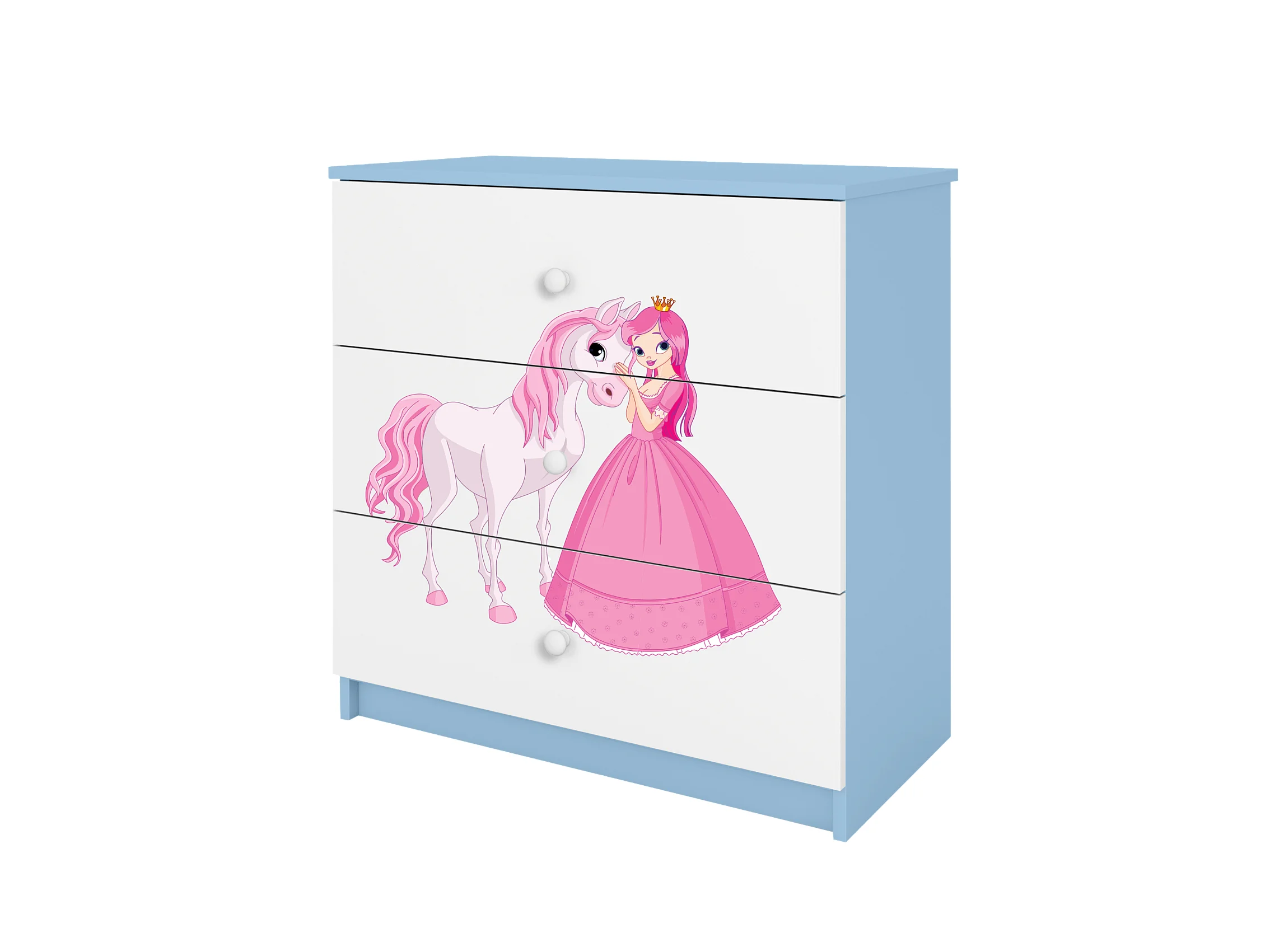 Kinderkommode mit Schubladen Prinzessin Pferd in der Farbe Blau Babydreams
