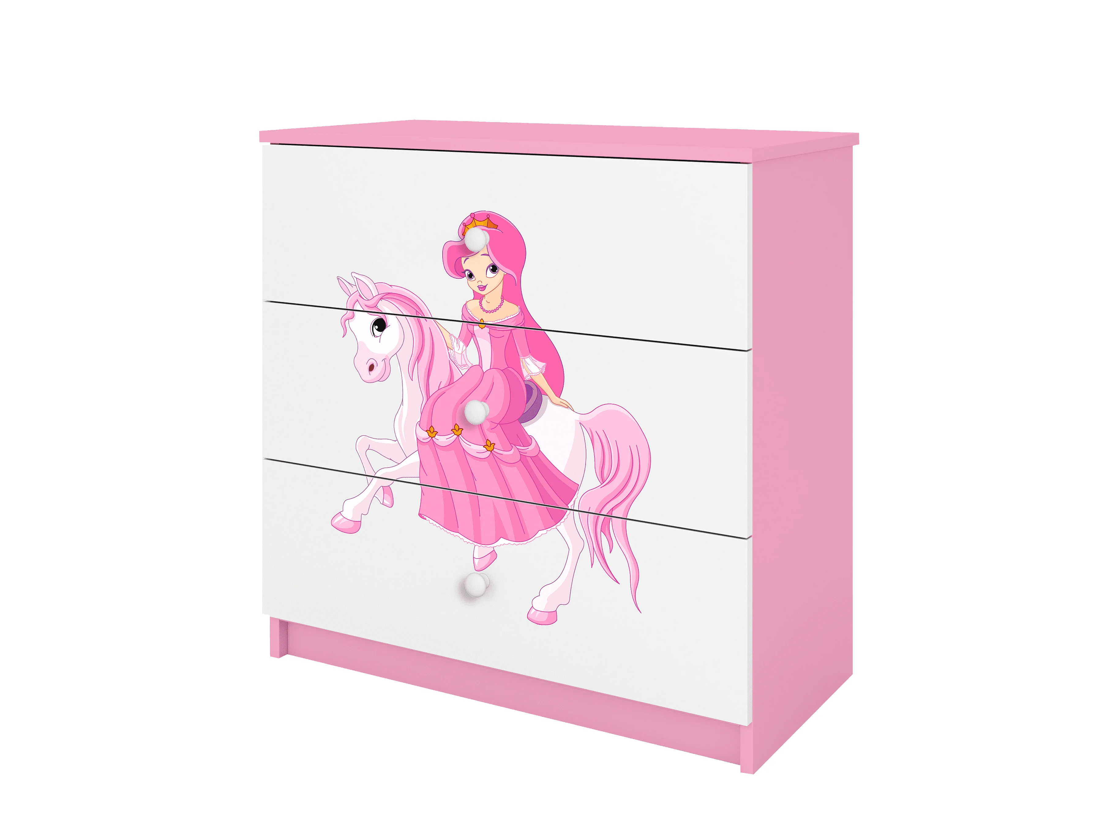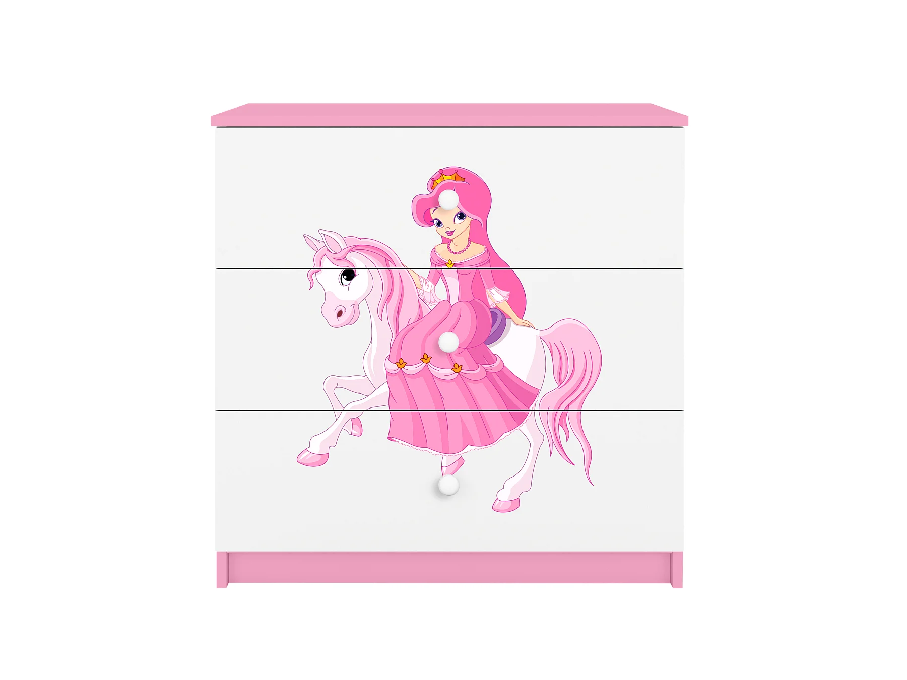 Kinderkommode mit Schubladen Prinzessin zu Pferd in der Farbe Rosa Babydreams