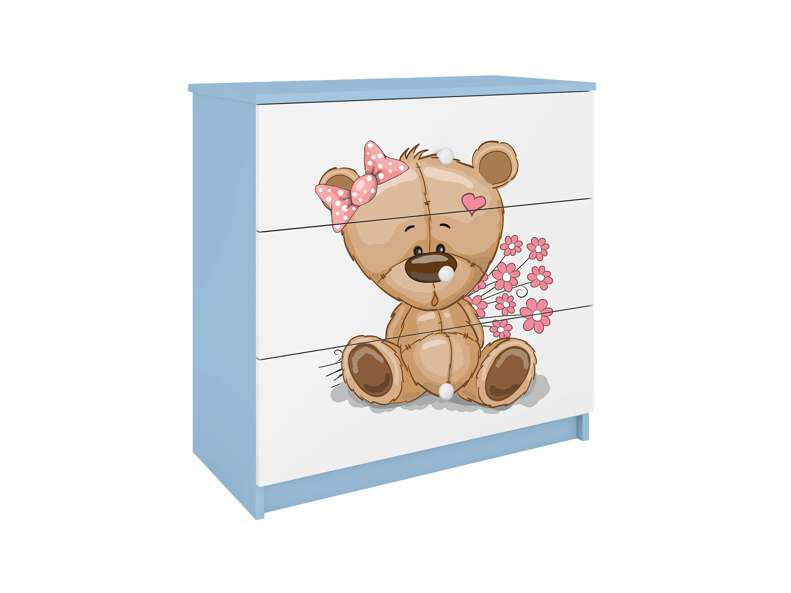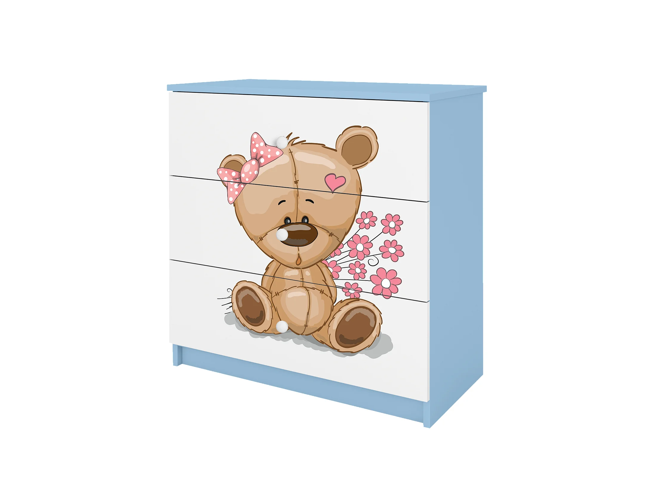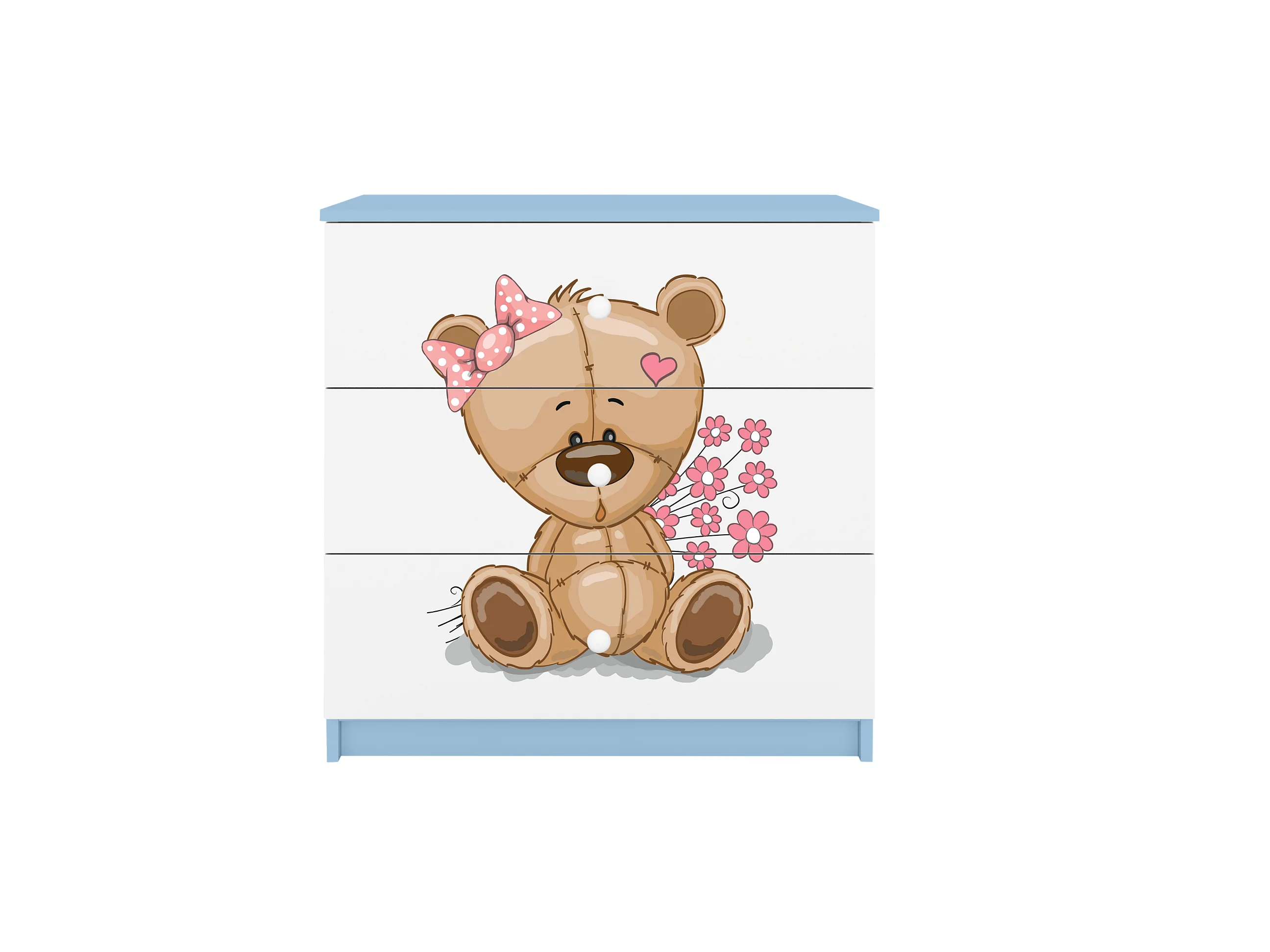 Kinderkommode mit Schubladen Teddybär Blumen in der Farbe Blau Babydreams