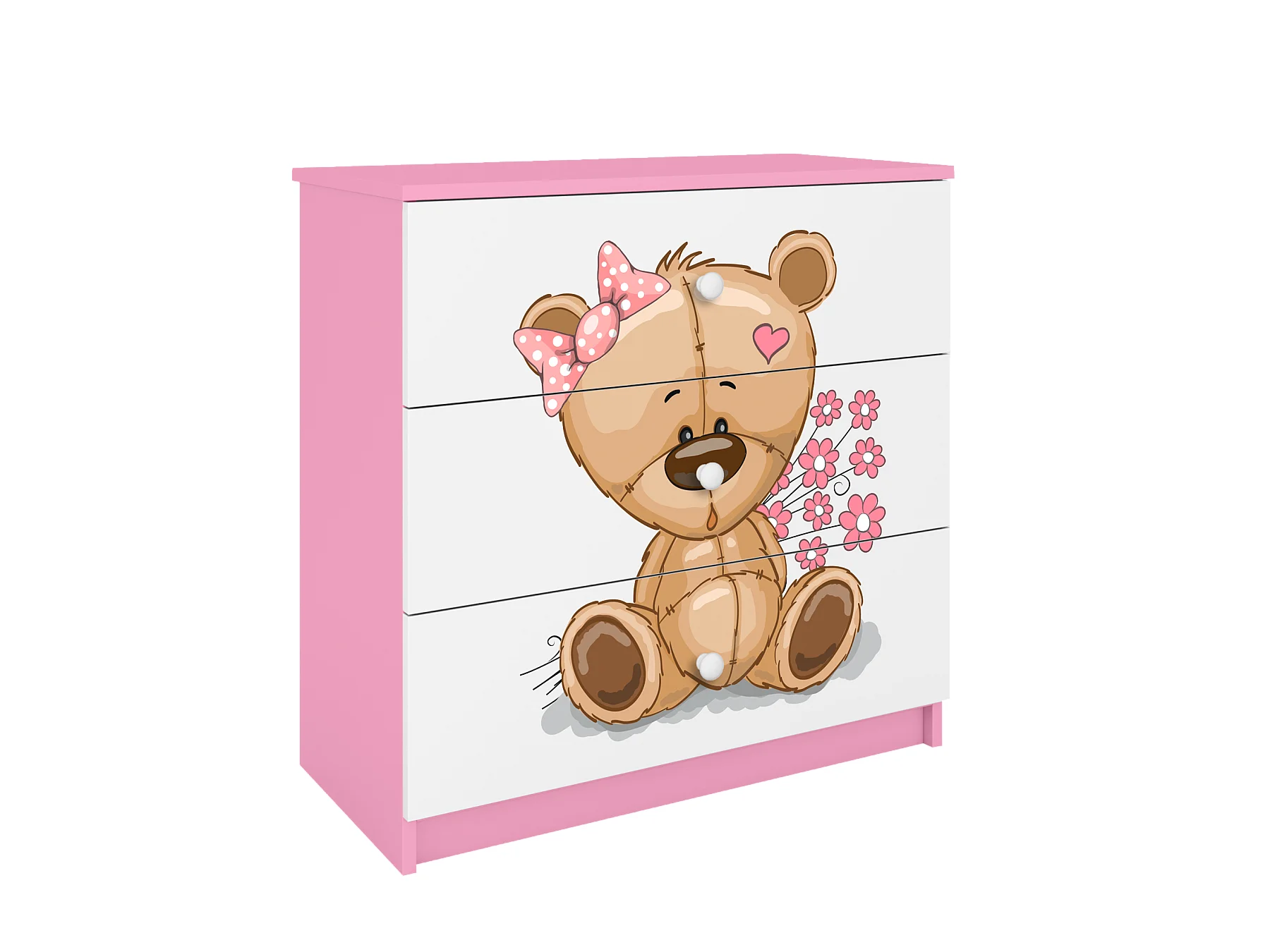 Kinderkommode mit Schubladen Teddybär Blumen in der Farbe Rosa Babydreams