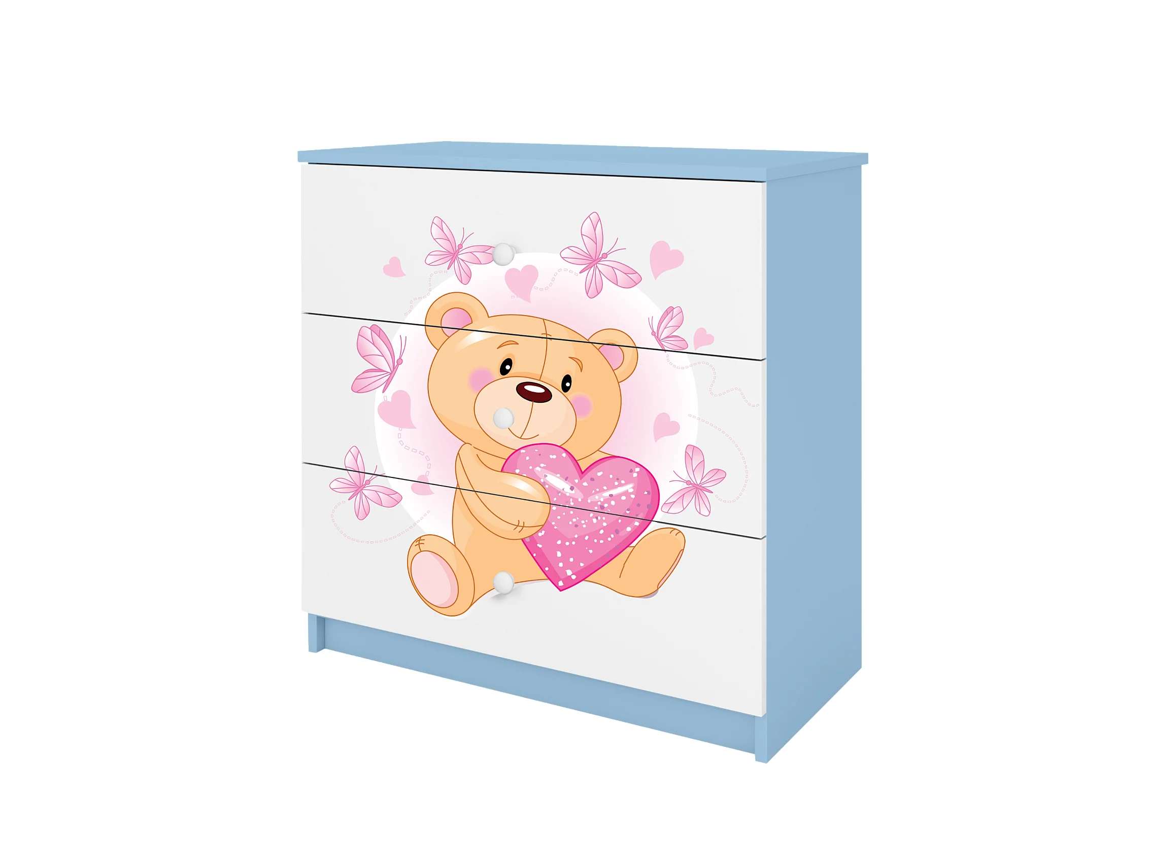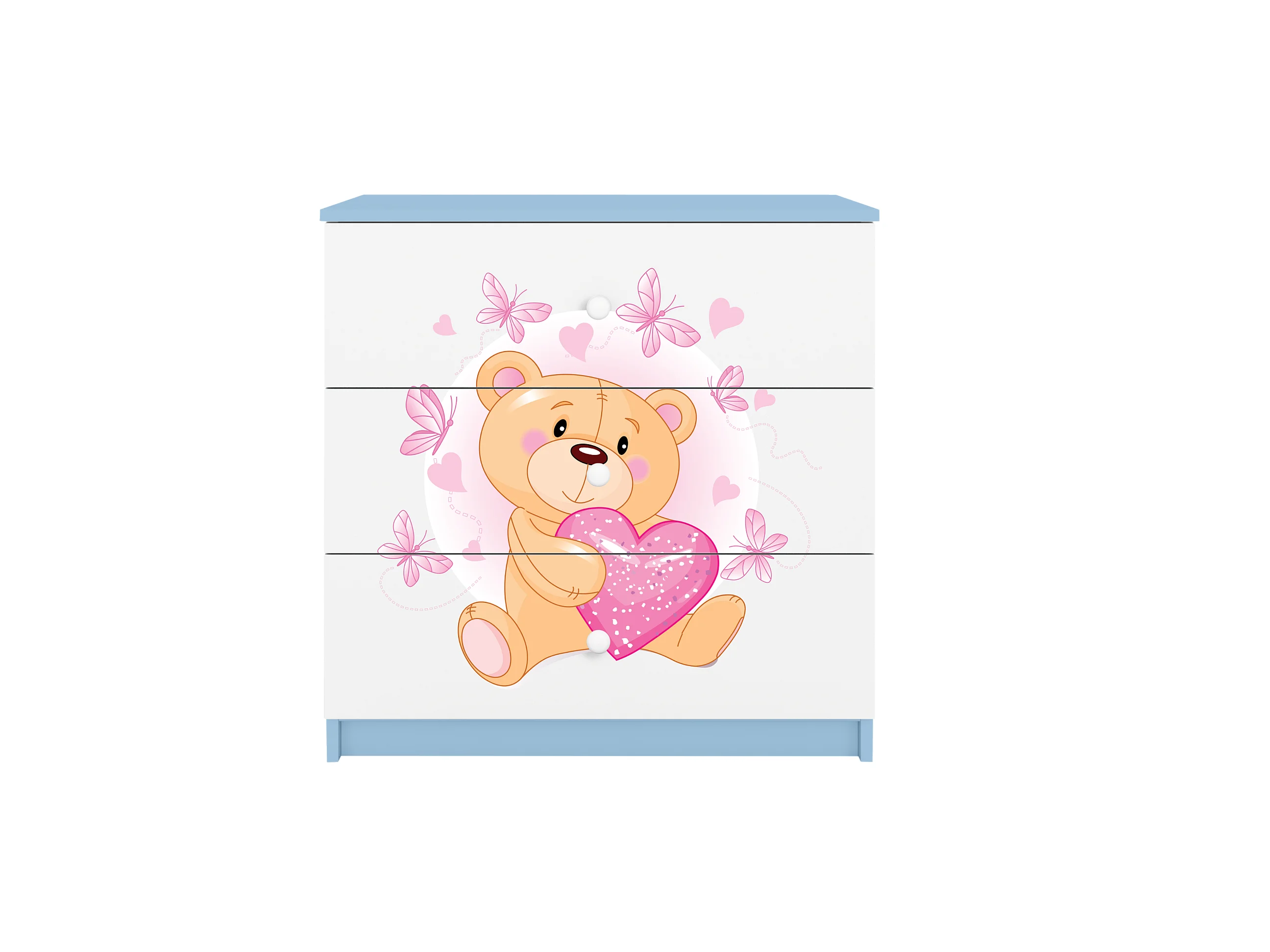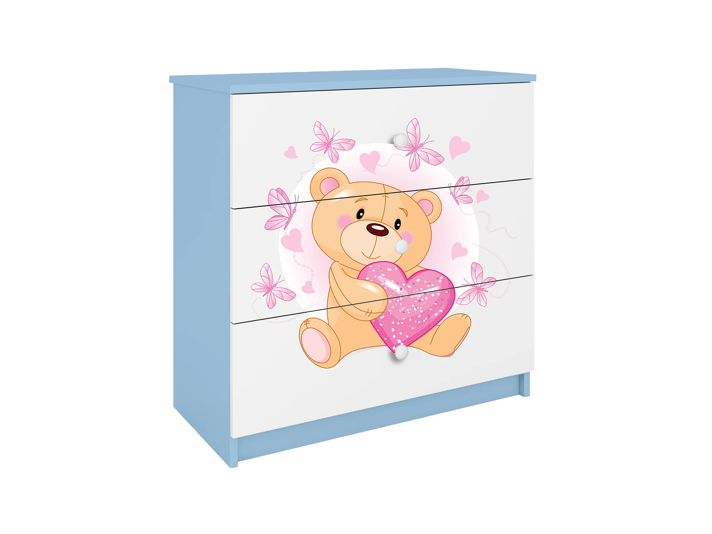 Kinderkommode mit Schubladen Teddybär Schmetterlinge in der Farbe Blau Babydreams